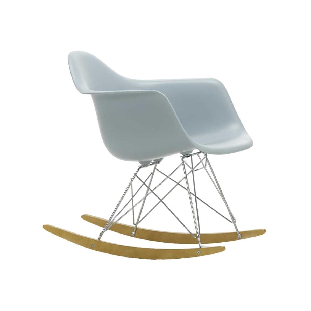 The organic seat, or “shell” as it's often referred to, has an organic form that allows for a comfortable sit while still providing firm posture support. Formed from thin lines of bent steel, the DAR's criss-crossing legs fix directly to the base and are joined by a pair of softly swooped piece of maple that transform this armchair into a rocker. A wonderfully crafted, and fully licensed edition by Vitra, this reproduction adheres strictly to the Eames original design - the only change being the replacement of fibreglass shell for an environmentally friendly polypropylene seat. Available in a range of bold and bright colours to suit every kind of interior scheme, the Eames DAR Chair makes a wonderful addition to any home or workspace - whether it's for use in the lounge, dining room, or office.