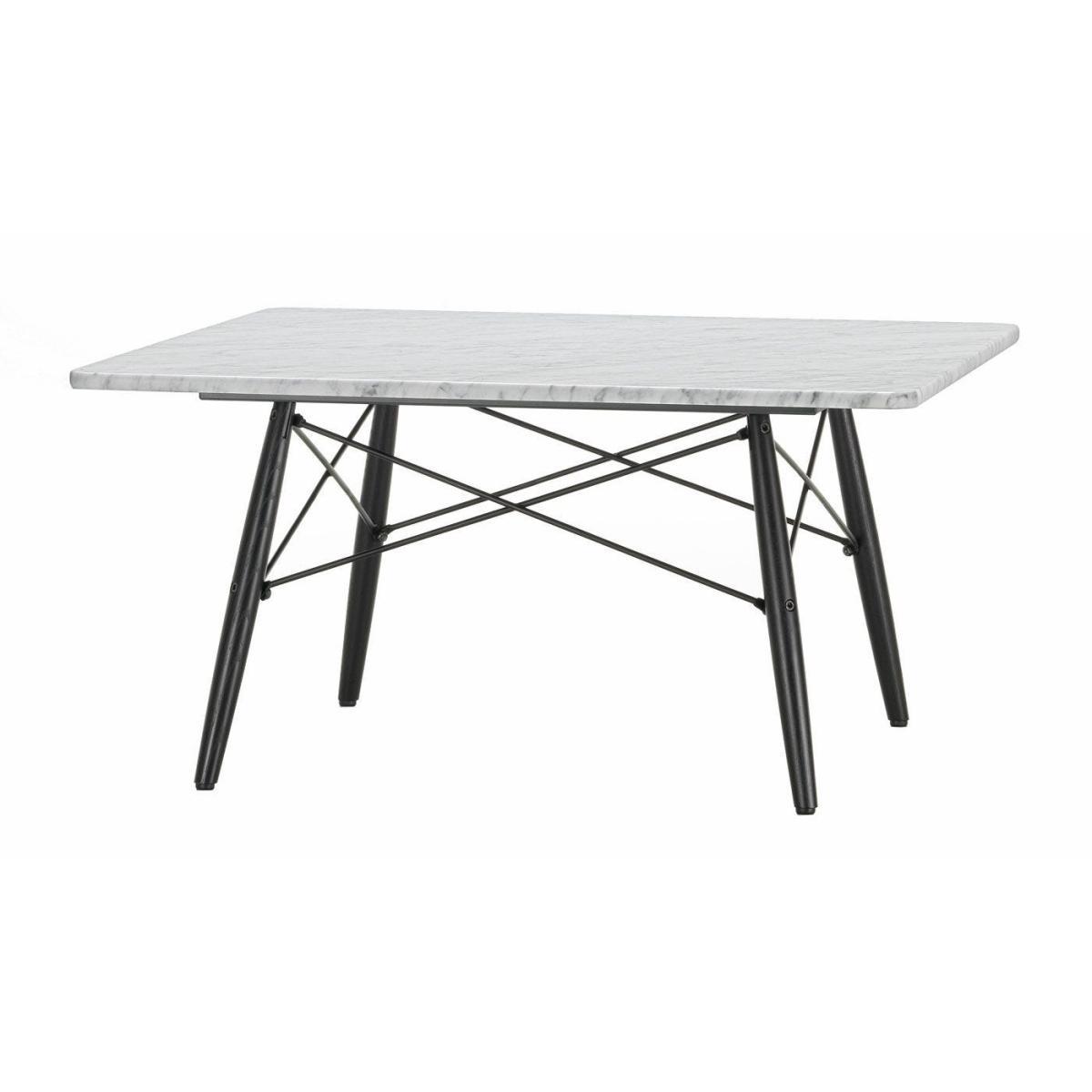 The square or rectangular table tops are made of palisander veneer, marble or solid American walnut. The base, combining black wooden legs with metal cross-struts, provides a stable understructure and emphasises the understated elegance of the Eames Coffee Table.