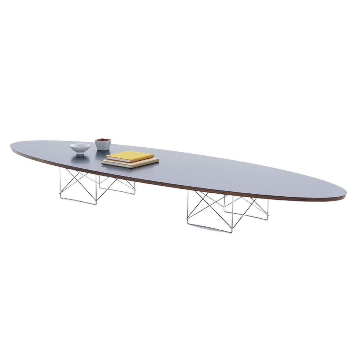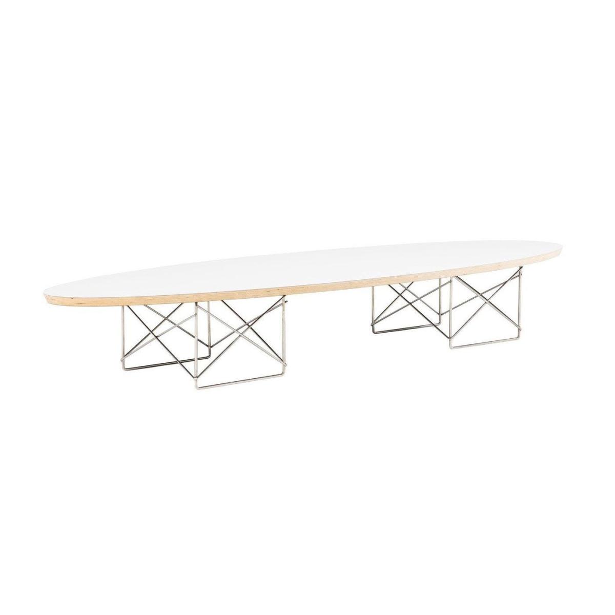 Commonly referred to as the ‘surfboard’, this classic Charles and Ray Eames design pairs an elliptical table top with a double chromed base. A mid-century classic, the fixed, static structure works well within both domestic and commercial settings, its mix of playful forms and sleek finishes a hallmark of what’s now referred to as the ‘Eames’ style.