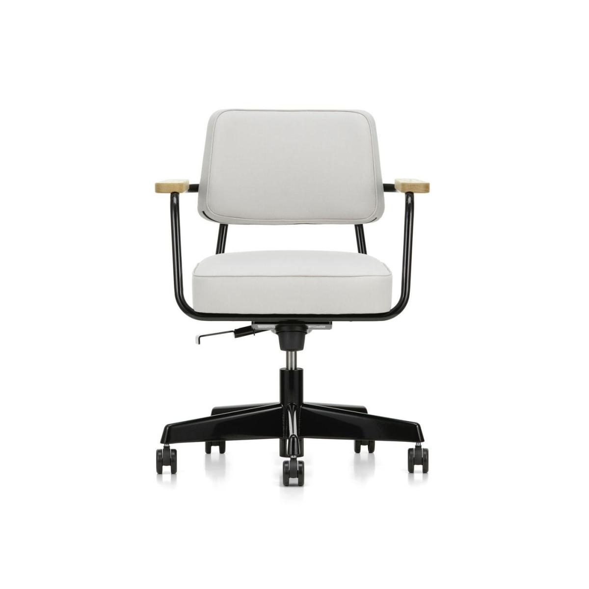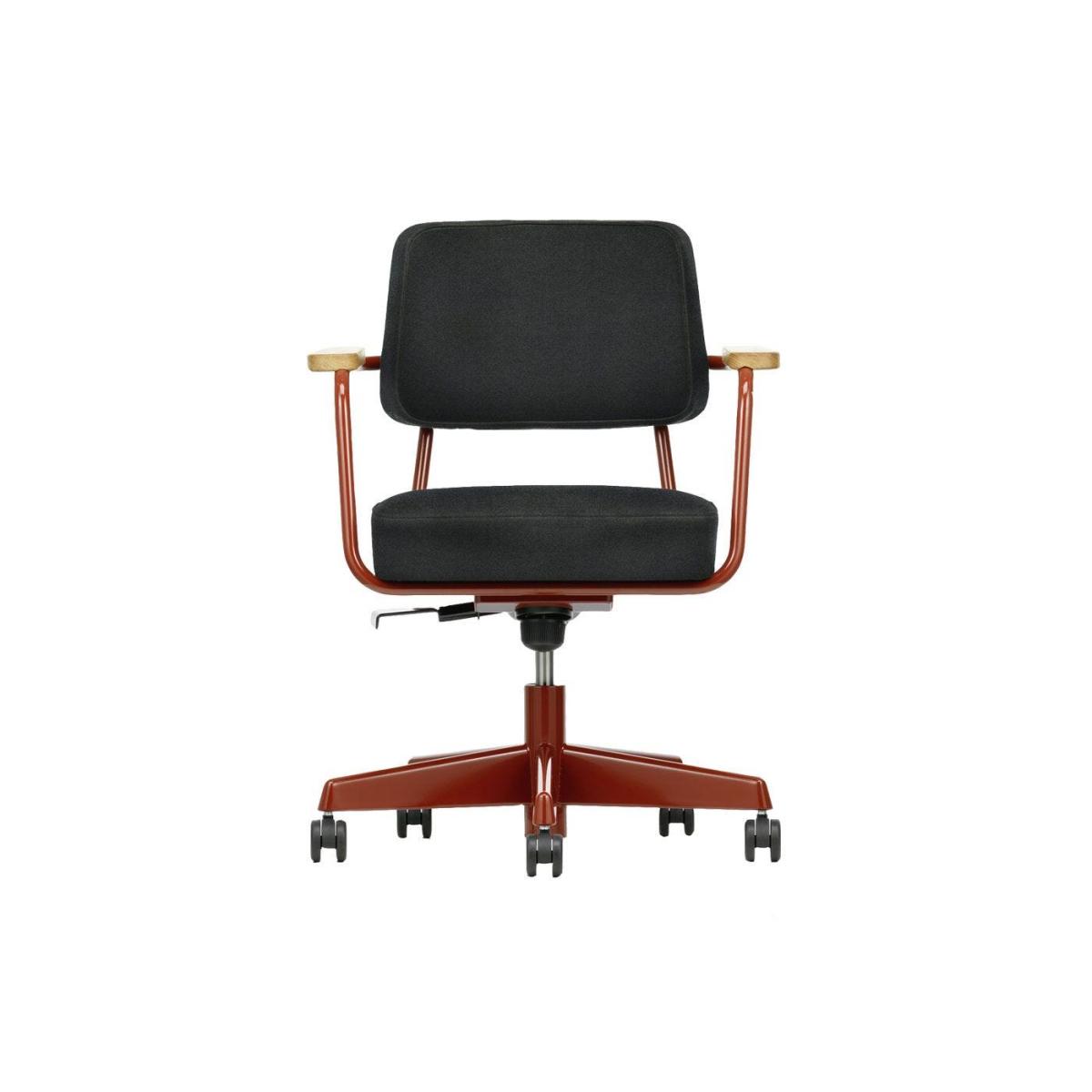 Although it is immediately evident that the Fauteuil Direction Pivotant hails from a different era, it appears in no way outdated or old-fashioned. This is due to the distinctive aesthetic of French designer, architect and engineer Jean Prouvé, who always placed an uncompromising focus on functional requirements.