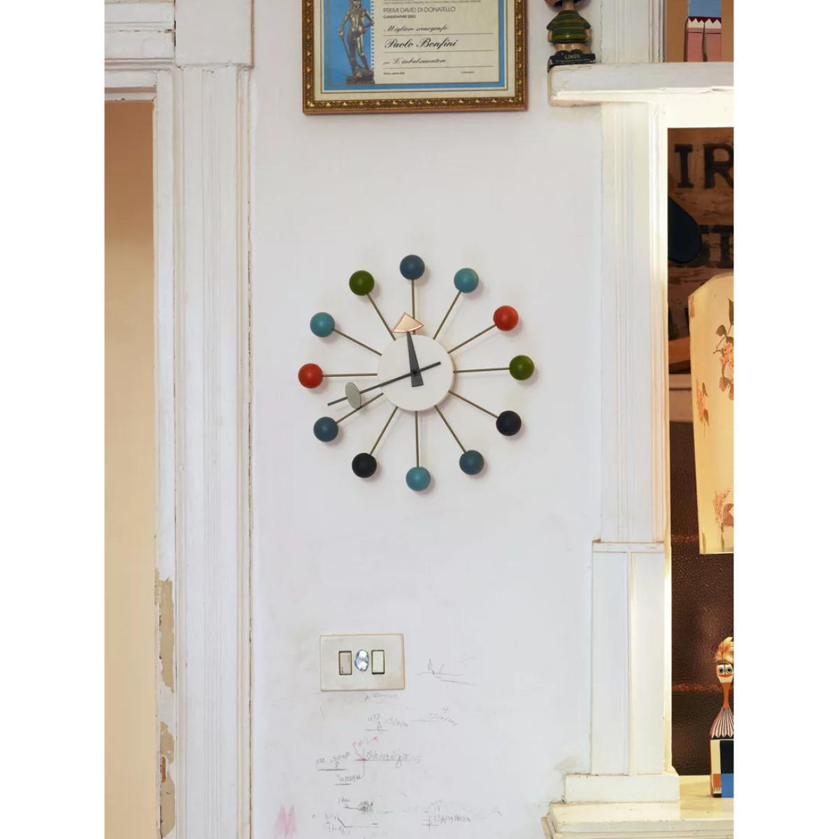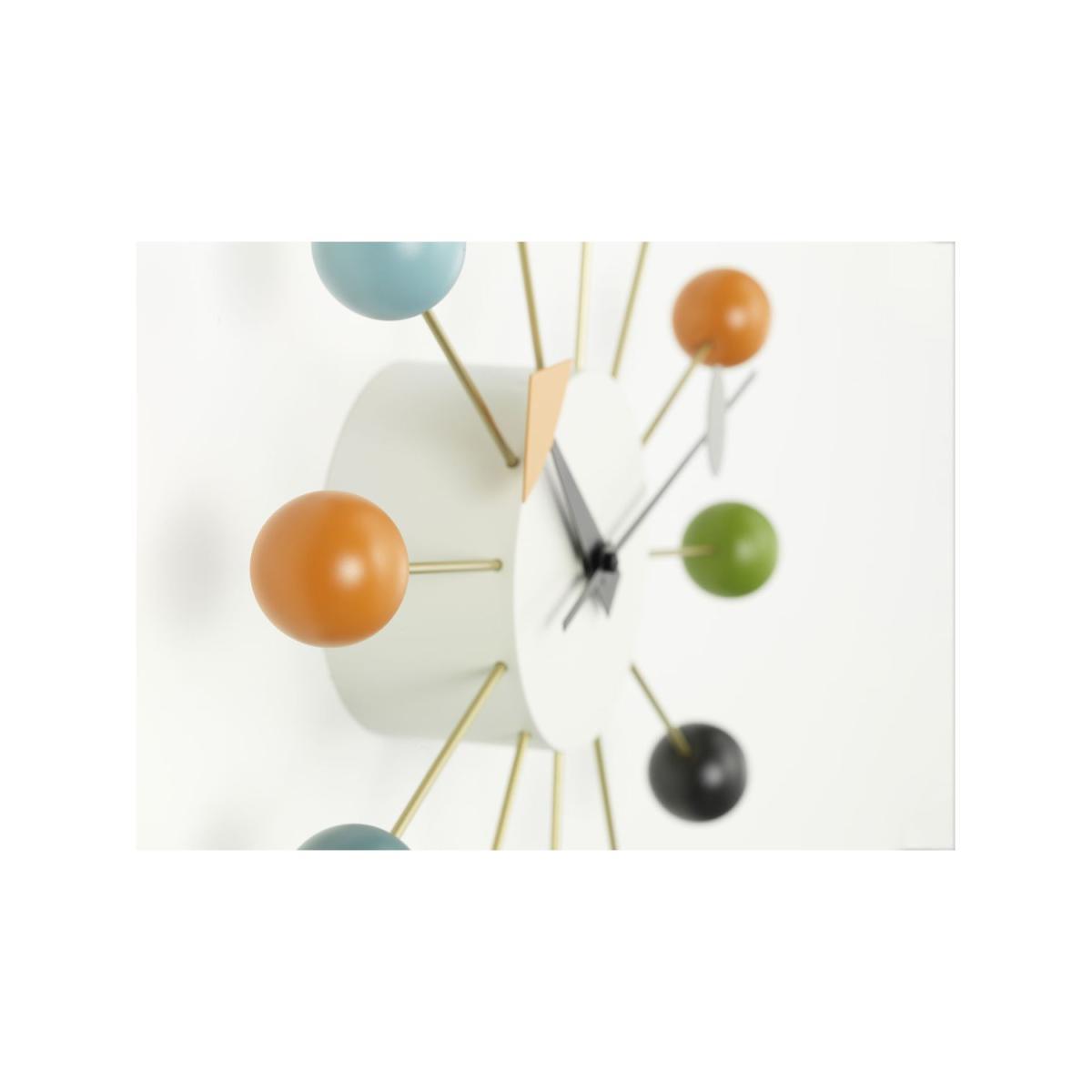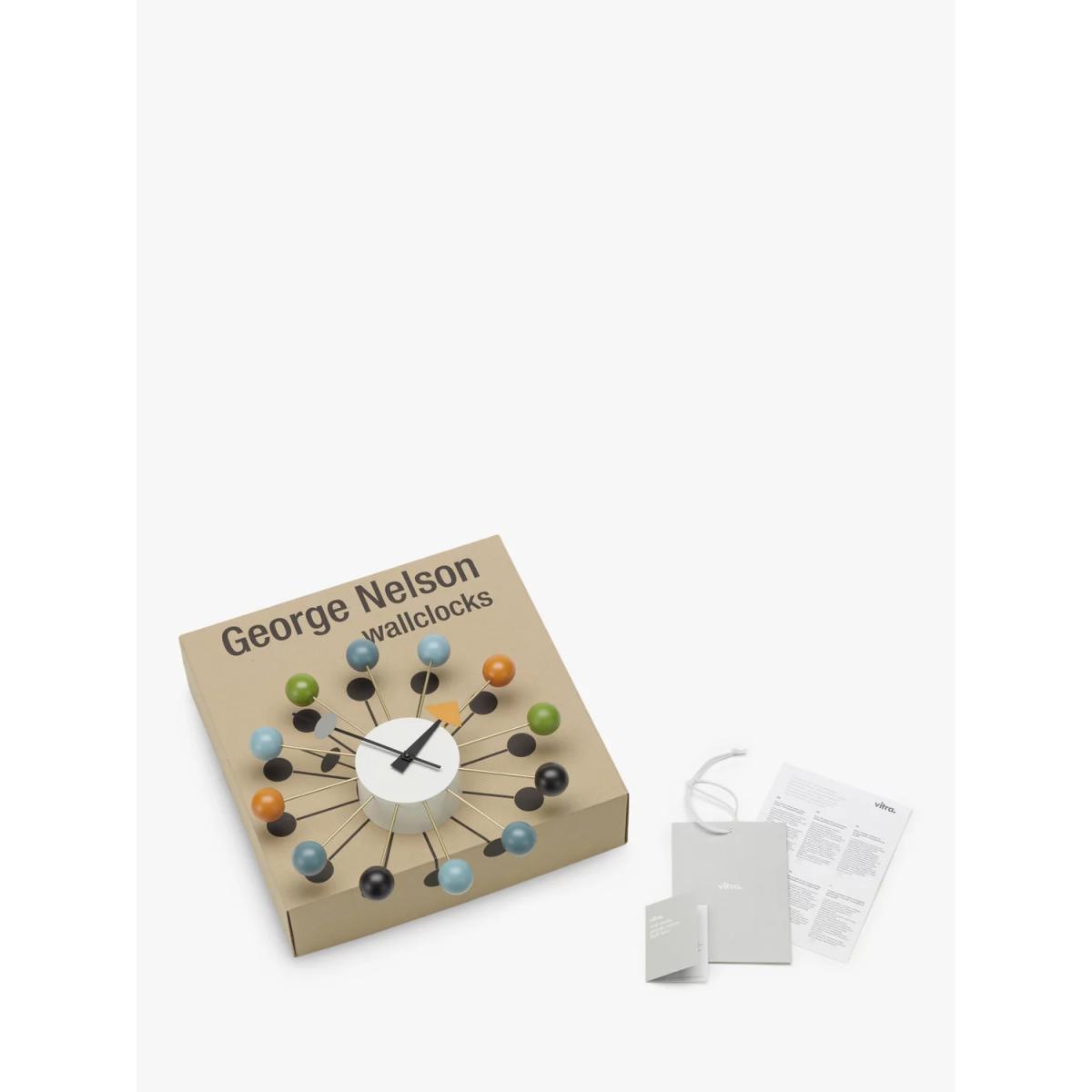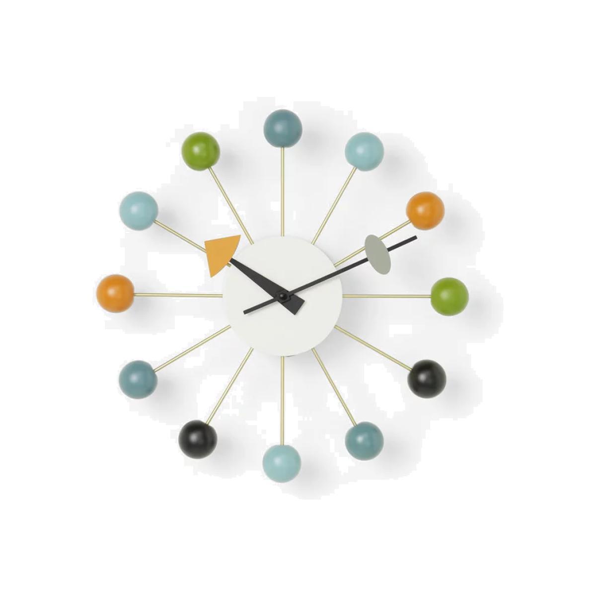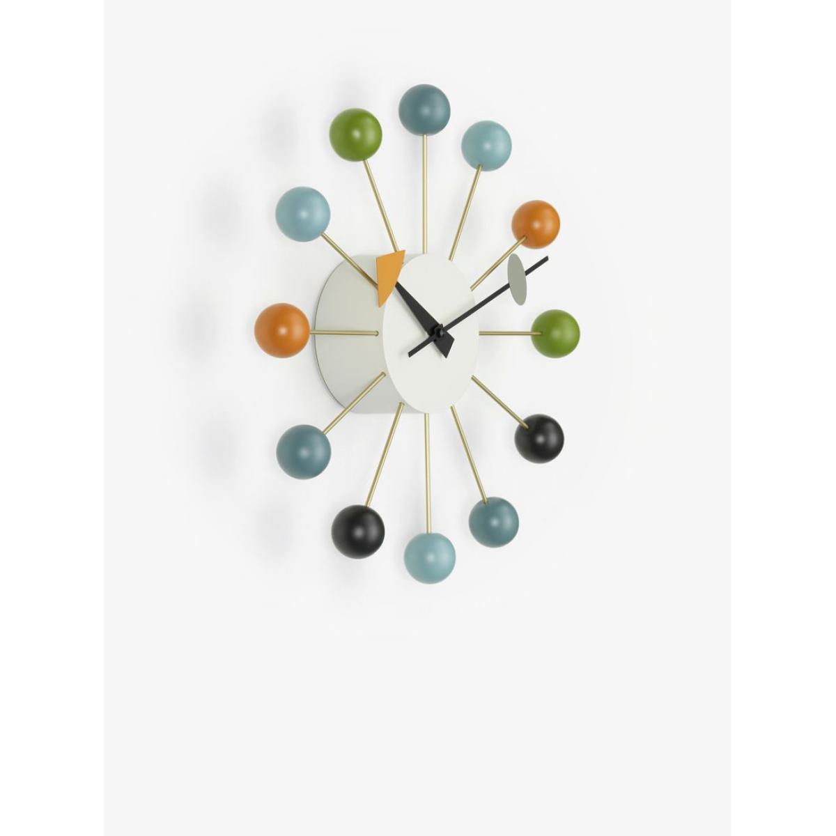 A faithful, colourful re-edition of the 1950s Ball wall clock from designer George Nelson. As with all of the eminent Nelson's designs, the structural form and diverse use of materials embody the joie de vivre of his mid-century heyday while remaining relevant and influential today. George Nelson's architecture, product design, exhibition design and publishing work have made him one of the all-time greats in terms of American designers. Responsible for such iconic designs as the Coconut chair, Sling sofa and Marshmallow sofa, among many others, his influential works spanned several decades and are still coveted today.
