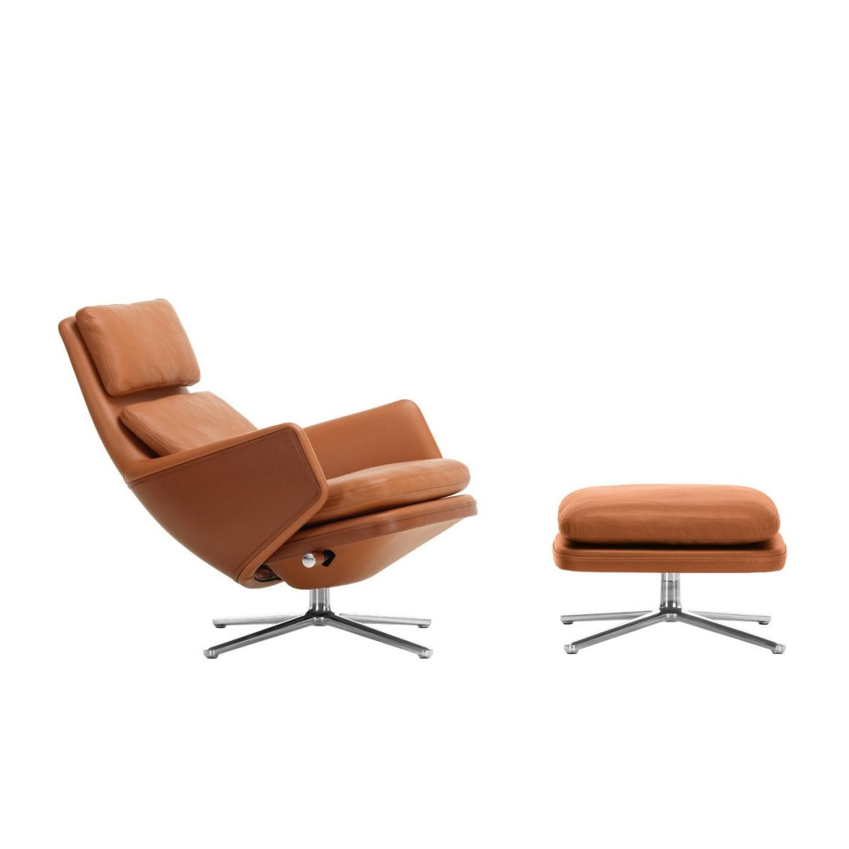 Vitra Grand Relax Ottoman Leather Cognac Polished Base Felt Glides - Heal's UK Furniture
