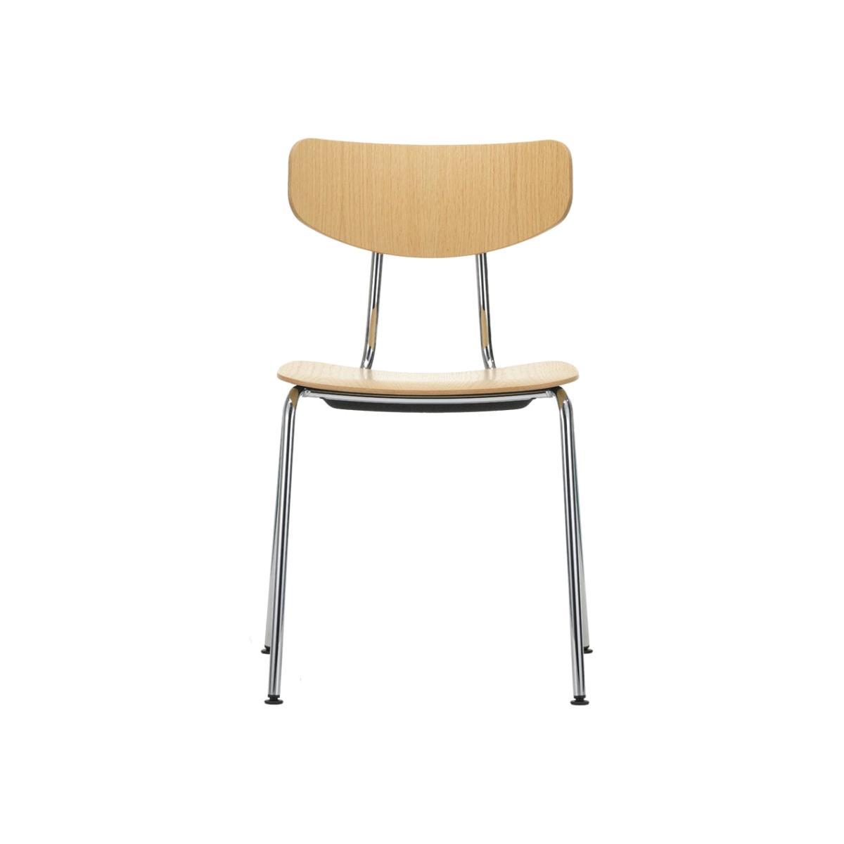 Jasper Morrison's signature understated aesthetic meets robust, quality materials in the form of the chrome and dark oak Moca Chair for Vitra. Boasting a dark oak veneer seat and backrest, the chair is finished with a polished chrome frame. The chair is stackable for easy storage and even features a stacking protector to help safeguard the seat when stacked.