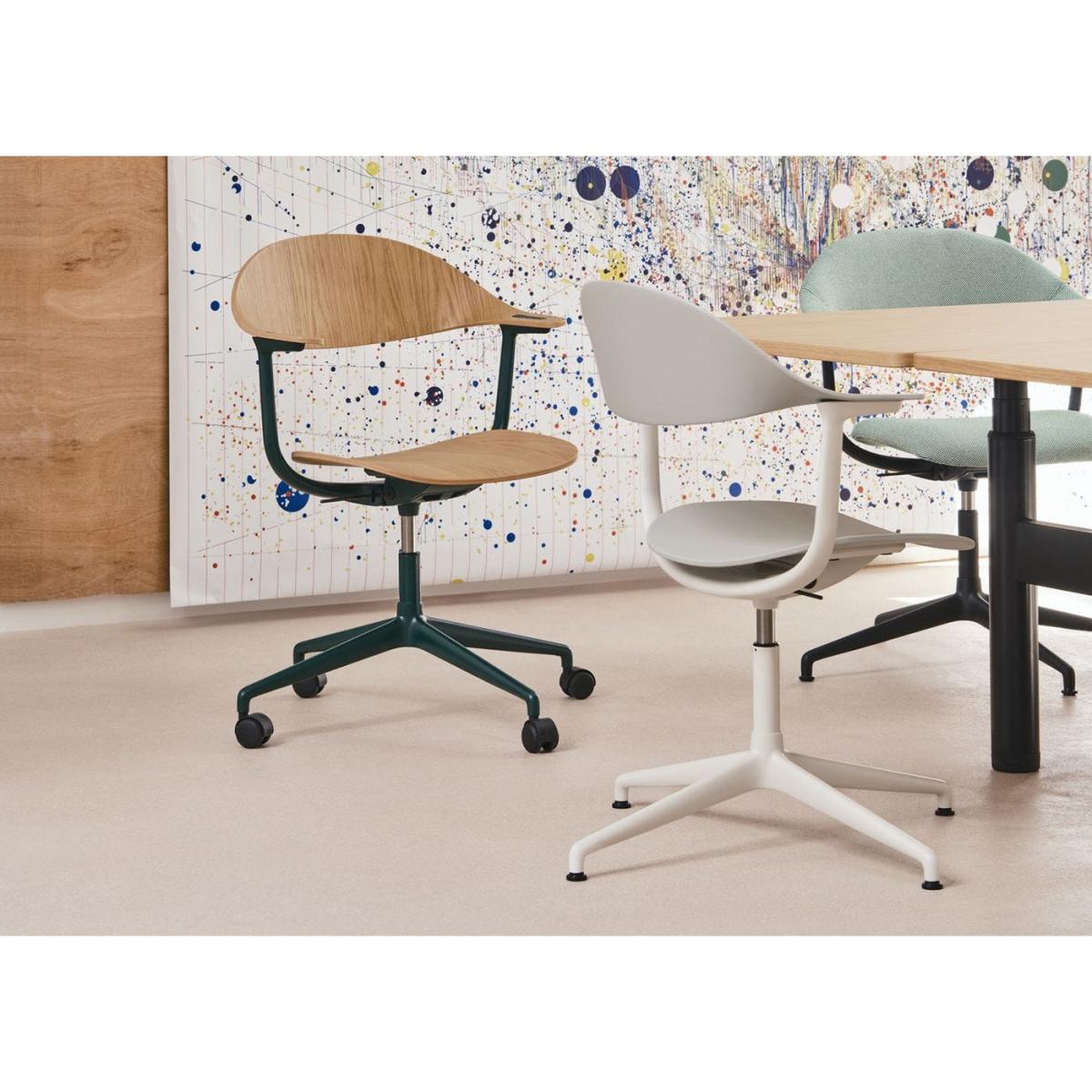 Designed by Erwan Bouroullec, the Mynt Chair redefines dynamic sitting with its patented mechanism that responds to your movement. Crafted from recycled materials with a natural oak finish and customisable base options, it balances functionality and softness. equally at home in studios, dining rooms, or shared workspaces.
