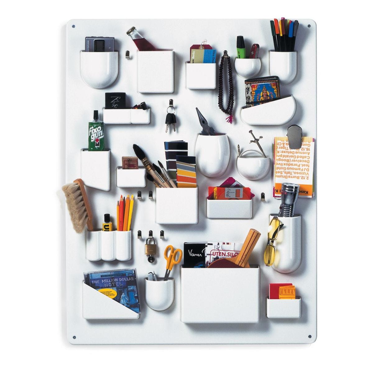 With its different-sized and shaped containers, its metal hooks and clips Utensilo organises offices, kitchens, workshops, bathrooms and children's rooms.