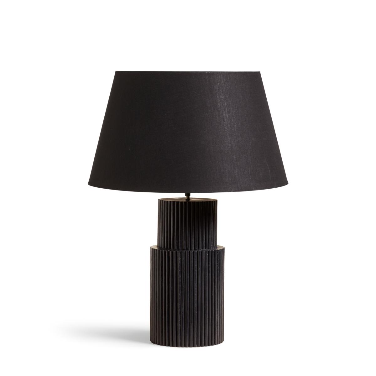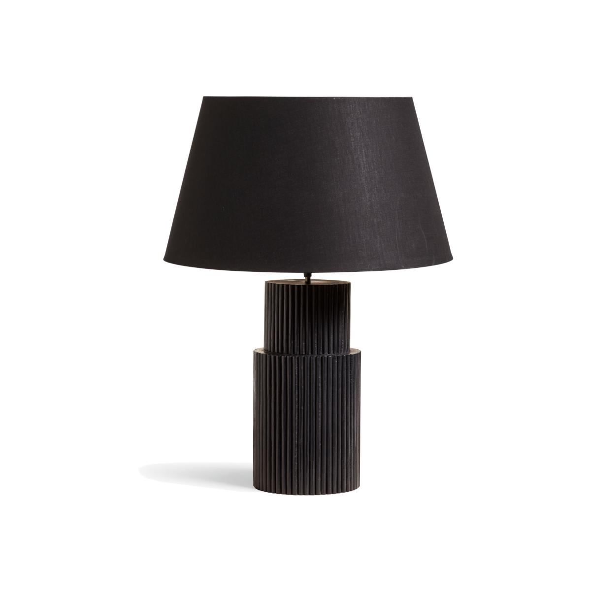 With a shape inspired by ancient columns, this table lamp was named after Vitruvius, a Roman author known for writing about the column order. He believed that architecture should have the three attributes of strength, utility and beauty, and this lamp certainly achieves that. Handmade from wood with tiered and bamboo detailing to give it its ridged relief, the lamp has then been painted a matte black for striking effect.