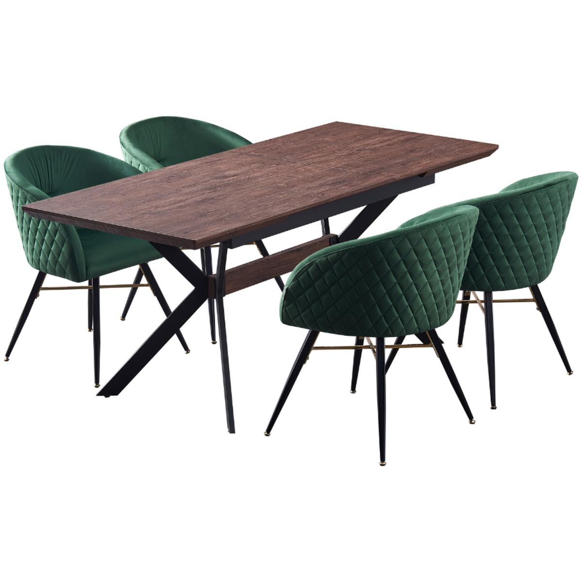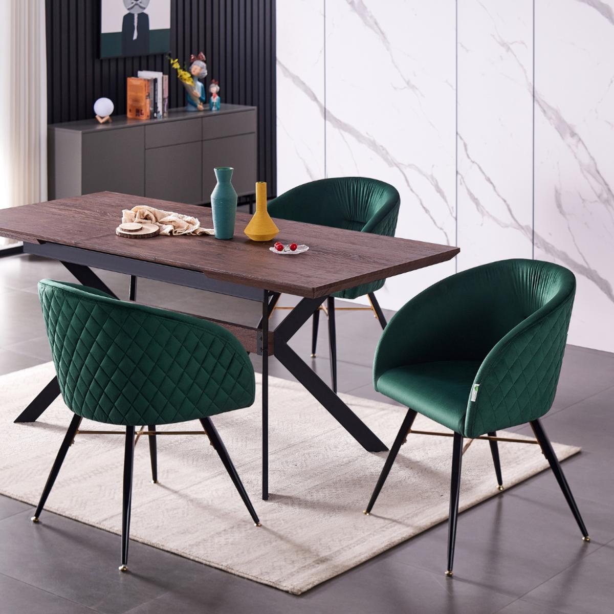 We are introducing the Vittorio Blaze dining set of 4 that includes a Blaze Rectangle Dining Table, which features an evergreen aesthetic and functionality of iconic mid-century modern furniture. Simply pull the table ends apart and an extra leaf pops into place allowing you to seat six with ease. The base is the sculptural cross-shaped design of legs in powder-coated MDF. The chic and innovative table to pass the test of time and help you live better. Comes with the Vittorio chairs that are the epitome of style and sophistication as well as offering superior comfort, perfect for making that LUX statement in any space. The dinette chairs are velvet upholstered, curved back, and are supported by four metal legs that provide enduring strength and sturdiness. The chair legs are equipped with floor protector end caps to shield your floor from scratching, in the meantime make these upholstered chairs anti-slip, and anti-noise and enhance their stability.
