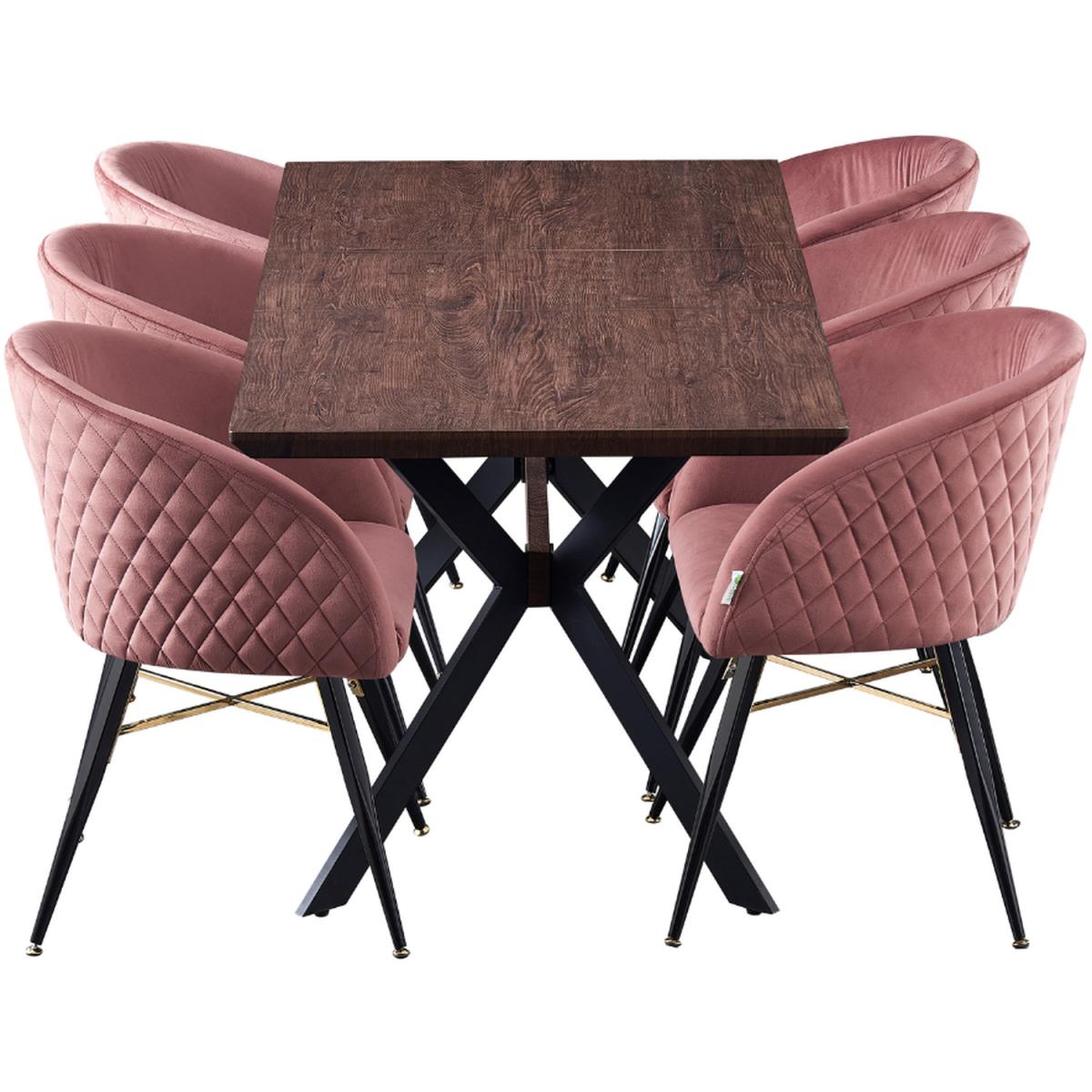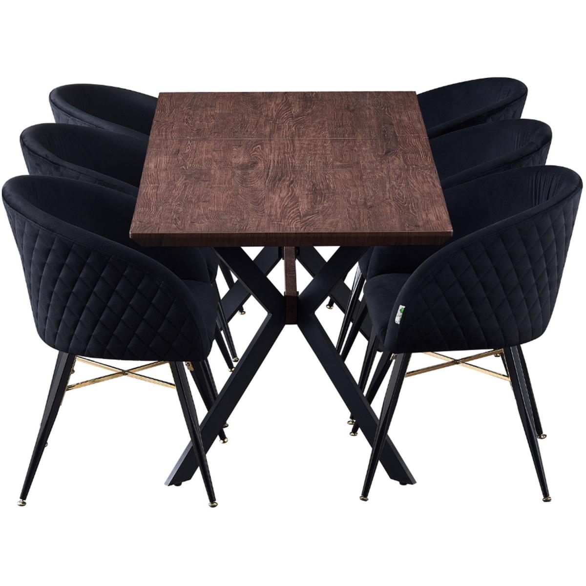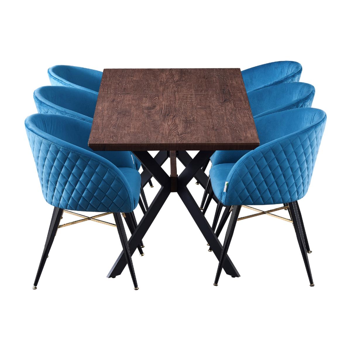 We are introducing the Vittorio Blaze dining set of 6 that includes a Blaze Rectangle Dining Table, which features an evergreen aesthetic and functionality of iconic mid-century modern furniture. Simply pull the table ends apart and an extra leaf pops into place allowing you to seat six with ease. The base is the sculptural cross-shaped design of legs in powder-coated MDF. The chic and innovative table to pass the test of time and help you live better. Comes with the Vittorio chairs that are the epitome of style and sophistication as well as offering superior comfort, perfect for making that LUX statement in any space. The dinette chairs are velvet upholstered, curved back, and are supported by four metal legs that provide enduring strength and sturdiness. The chair legs are equipped with floor protector end caps to shield your floor from scratching, in the meantime make these upholstered chairs anti-slip, and anti-noise and enhance their stability.
