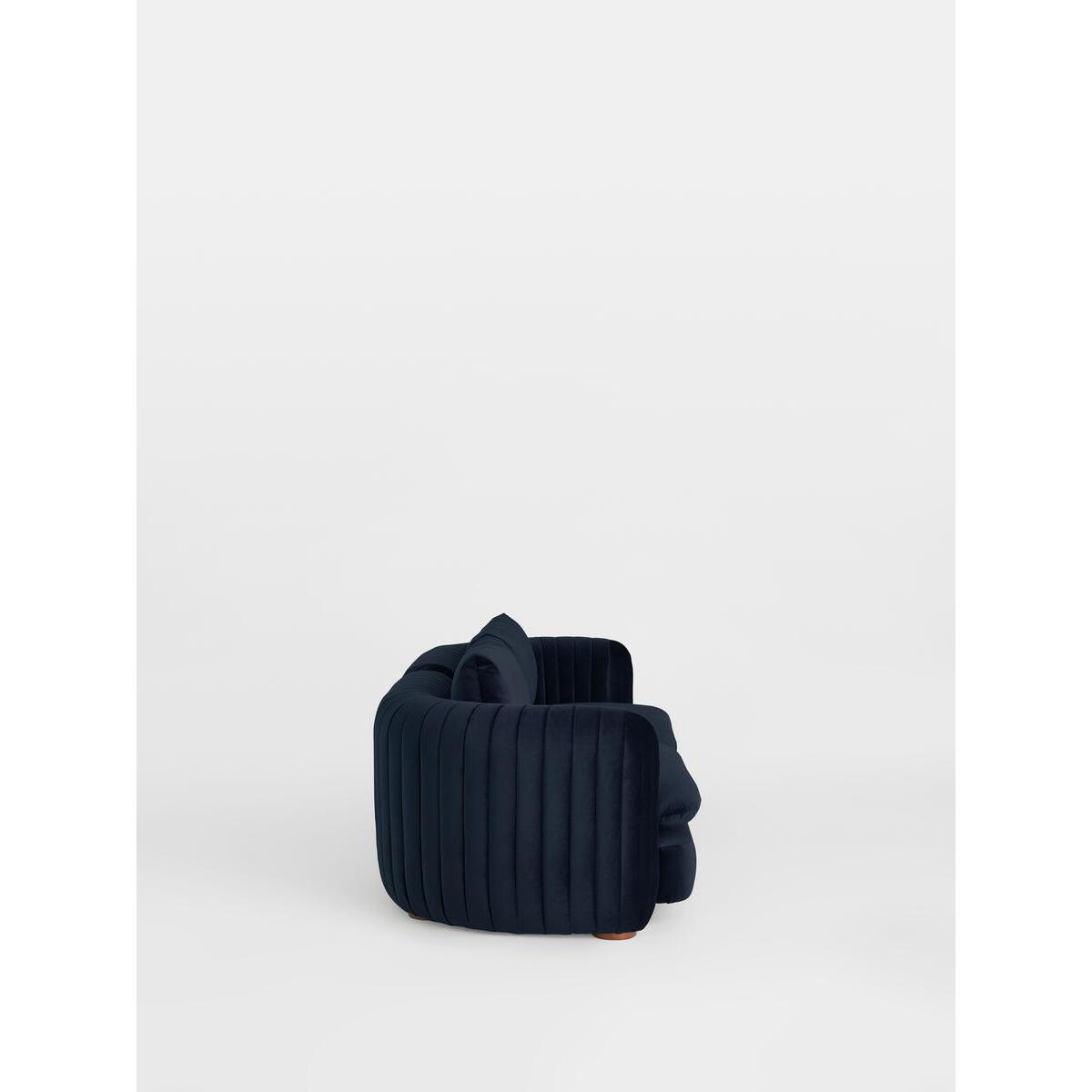 I love this three-seater in cotton velvet because the rich indigo adds a deep, luxurious tone that works well in both contemporary and classic interiors. It's versatile enough to anchor a neutral palette or complement more vibrant colour schemes. For styling tips, pair it with textured throws or patterned cushions for added visual interest, and consider balanced lighting to highlight the velvet's subtle sheen. This sofa works particularly well in cosy living rooms, open-plan spaces, or luxe minimal interiors, where its colour can become a statement piece without overpowering the rest of the decor. Practical tip: place it against a light-coloured wall or in a space with natural light to enhance its colour depth and plush appearance.