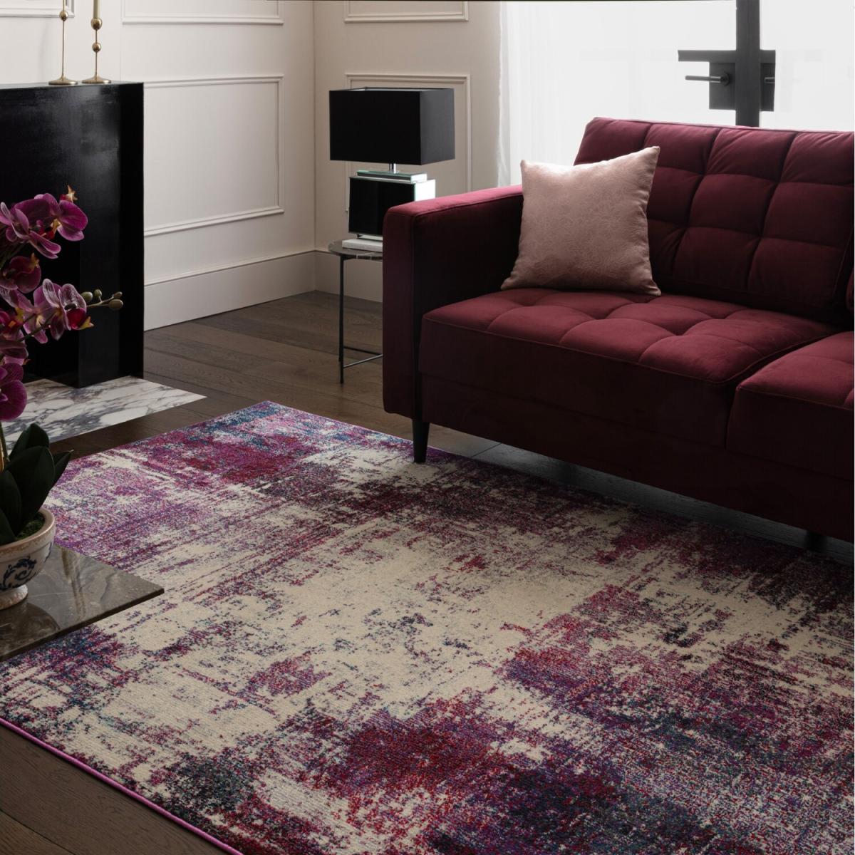 Our Viva distressed pattern large rug is a gorgeous modern design featuring a neutral cream base colour with patches of coloured thread ranging from deep purple to vivid magenta, all with a distressed texture. It will act as a stunning focal point for any living area, bedroom or even dining room without overwhelming the space. Made from 100 Polypropylene that won't fade and is easy to clean. A 14mm pile on a jute back. Note Due to differences in how screens display colours, there may be some slight variations in colour from what is pictured. Our Viva distressed pattern rug is a gorgeous modern design featuring a neutral cream base colour with patches of coloured thread ranging from deep purple to vivid magenta, all with a distressed texture. It will act as a stunning focal point for any living room, bedroom or even dining room without overwhelming the space. Made from 100 Polypropylene that won't fade and is easy to clean. A 14mm pile on a jute back, it measures 120cm x 170cm (3.9ft x 5.6ft).Note Due to differences in how screens display colours, there may be some slight variations in colour from what is pictured.