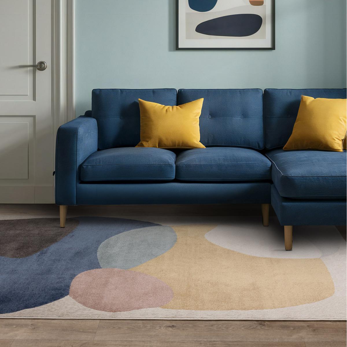 I love the Viva Geometric Palette rug for its versatile neutral tones and modern geometric design, making it a great addition to a range of interiors. It works particularly well in contemporary or Scandinavian-styled living spaces, where its understated pattern can add visual interest without overwhelming the decor. Practical styling tips include pairing it with a simple, solid-coloured sofa like the one in the picture, and incorporating accessories in complementary colours-mustard cushions, for example-to create a cohesive look. Its neutral palette makes it easy to layer with other textures and patterns, making it a flexible choice for both minimalist and more eclectic schemes.