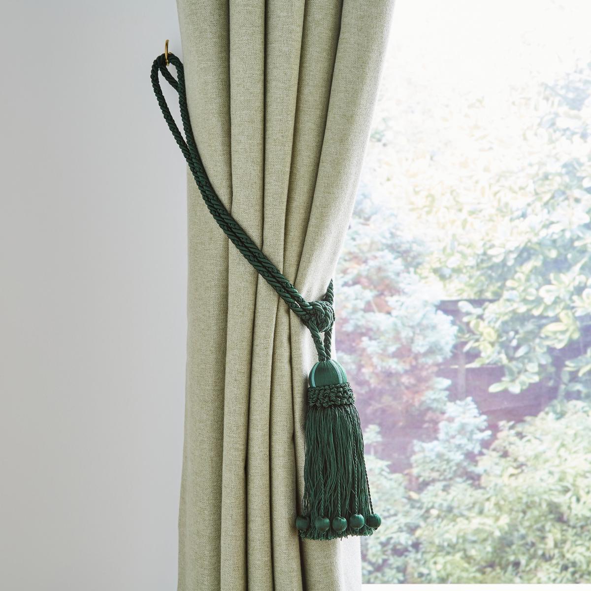 * Beautiful Tassel Detailing* Bold, Bottle Green Colourway* Made from Viscose & Cotton Dressed in a striking bottle green colourway, the Vivaldi Tieback is the perfect accessory for your curtains. Made out of durable viscose and cotton, it boasts tassel detailing and a traditional look.
