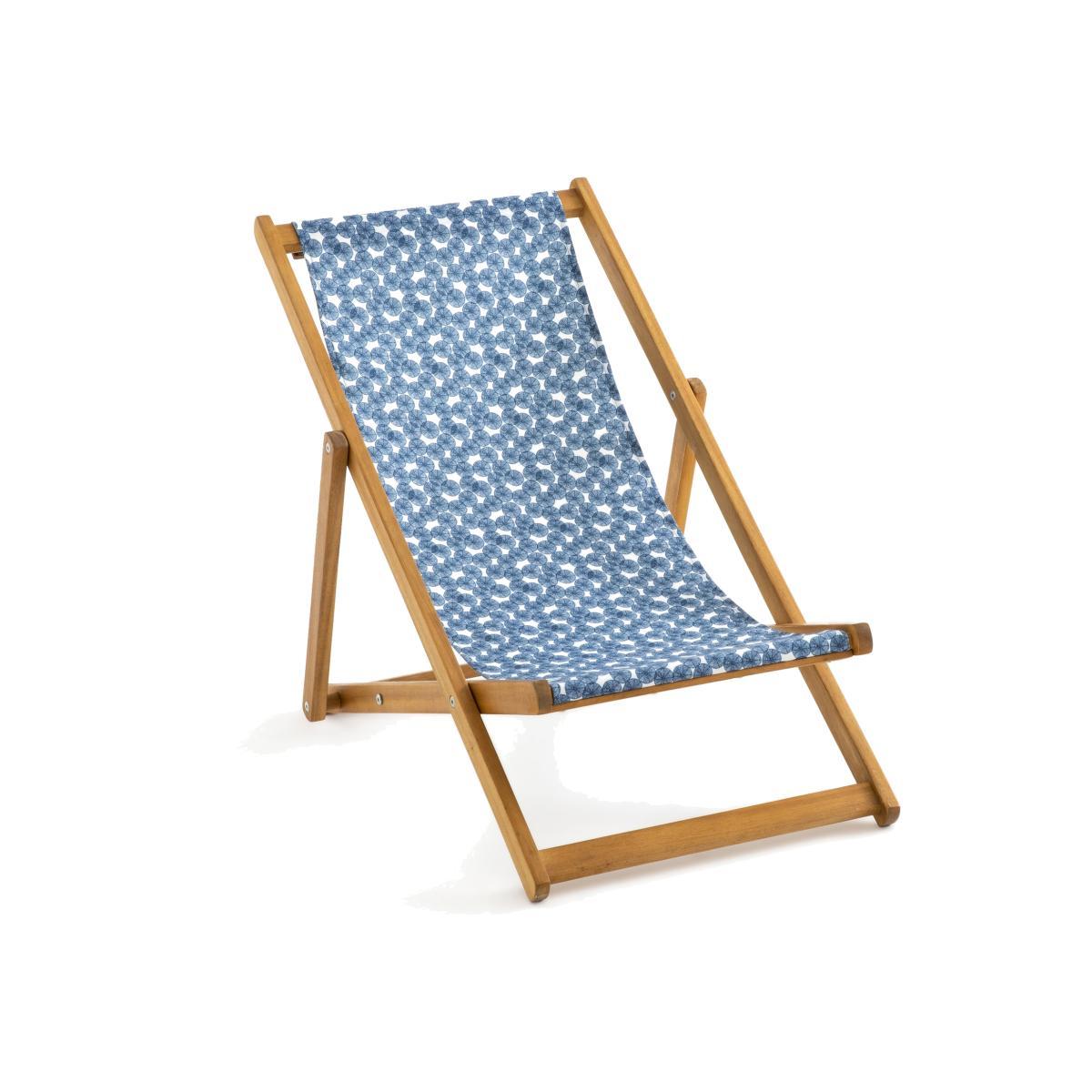 The Vivéca child's deck chair. Your little ones can relax like grown ups with this stylish deck chair! A secure system prevents the deck chair from collapsing. Product details:. Acacia construction. Seat in 100% cotton, Spun Polyester (320g/m2) treatment on the outside. 3 recline positions. Safety system to prevent pinching of little fingers: You must unscrew this to fold down the chair. Max weight 100 kg. Size. L46 x H60/73 x D76 cm. Dimensions and package weight. L97 x H49 x D45 cm. 3.5kgDelivery. Your deck chair will be delivered to your door ! Note! Please check that all access points are large enough to accommodate your delivery (doors, stairs, lifts).