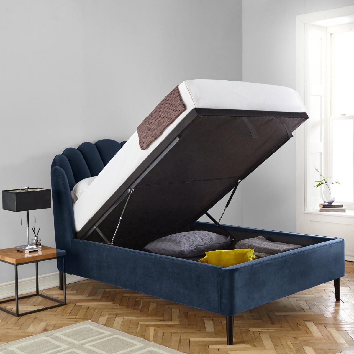 Perfect for adding that modern touch to your bedroom, this Vivan Ottoman bed is stylish and timeless. With a curved plush upholserted headboard, this bed compliments any bedroom interior and is available in 4 stylish colourways so you can find the right bed for you. This bed is available in a range of colours and sizes.