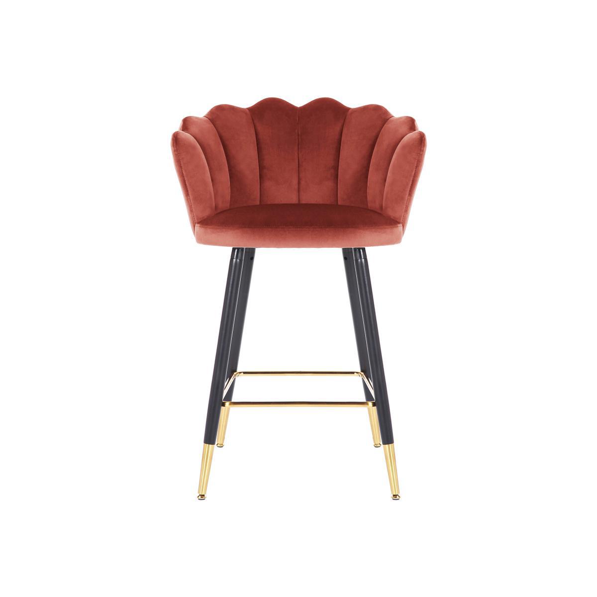 I love this bar stool for its distinctive shape and luxurious velvet finish. The brilliant rose hue makes it an eye-catching statement piece that instantly elevates any bar or kitchen area. It works particularly well in eclectic, modern, or retro-inspired interiors, where its bold colour can be complemented with neutral or complementary tones. For styling tips, pair it with darker or matte finishes to make the colour pop, or coordinate with soft pinks and warm neutrals for a cohesive look. Its plush velvet and distinctive scalloped backrest add a touch of glamour, while the sturdy black legs with gold accents provide stability and a hint of sophistication-making it both attractive and practical for everyday use.