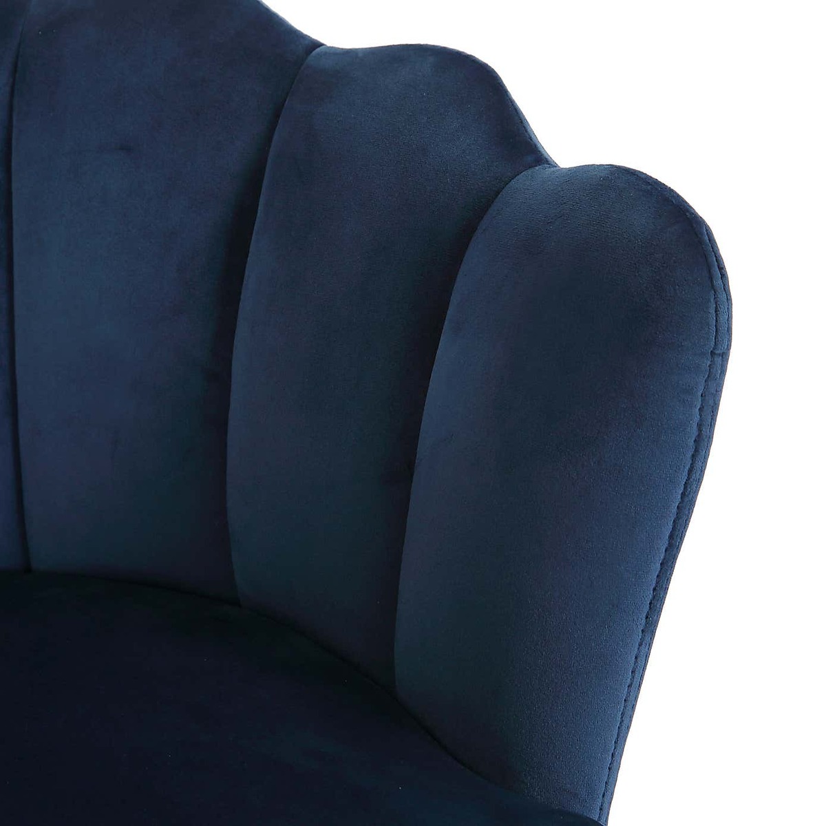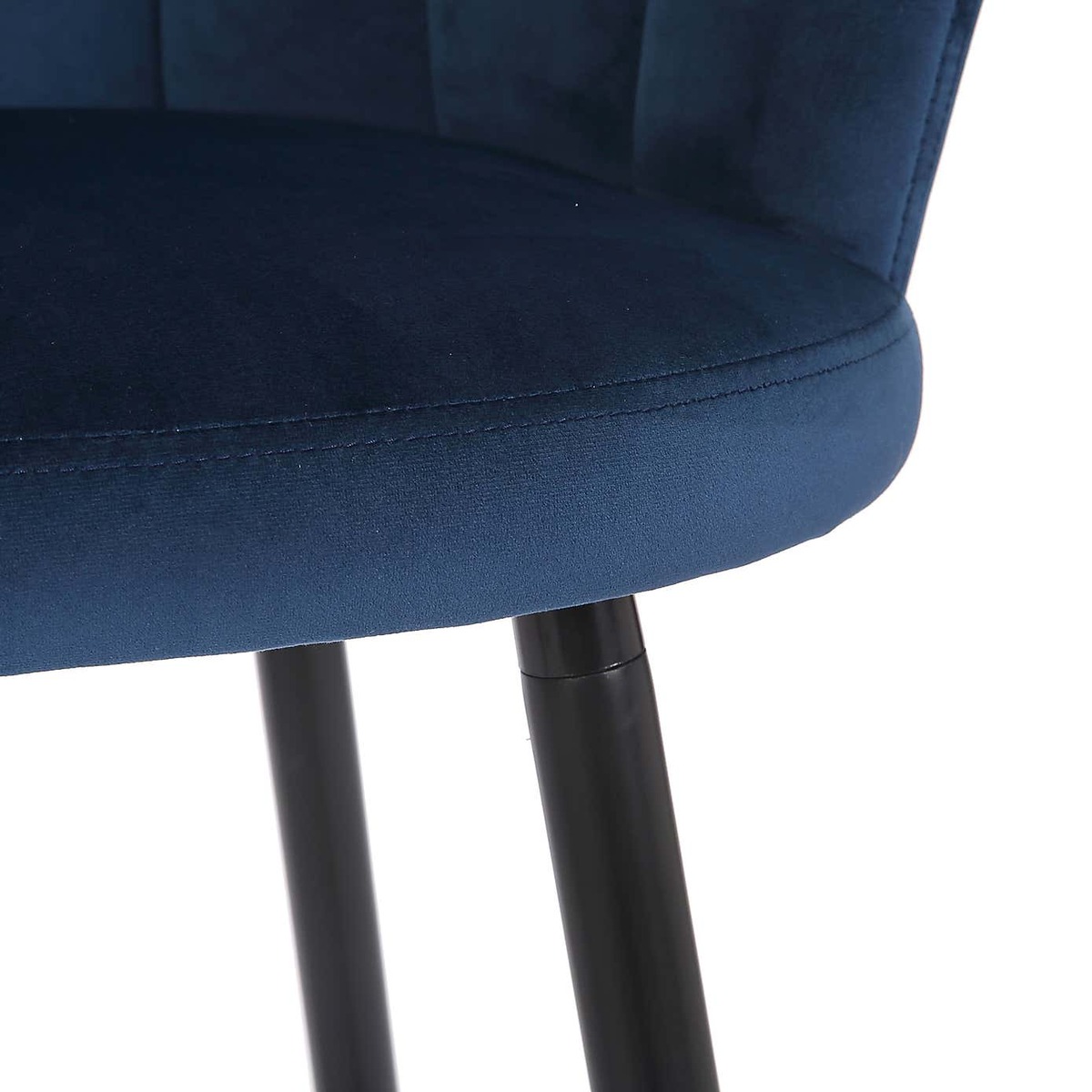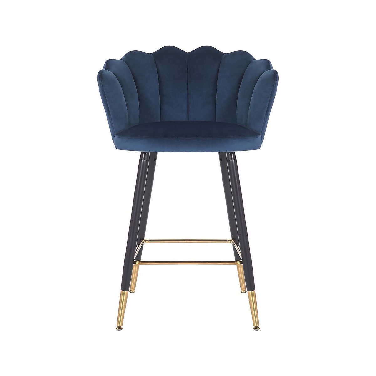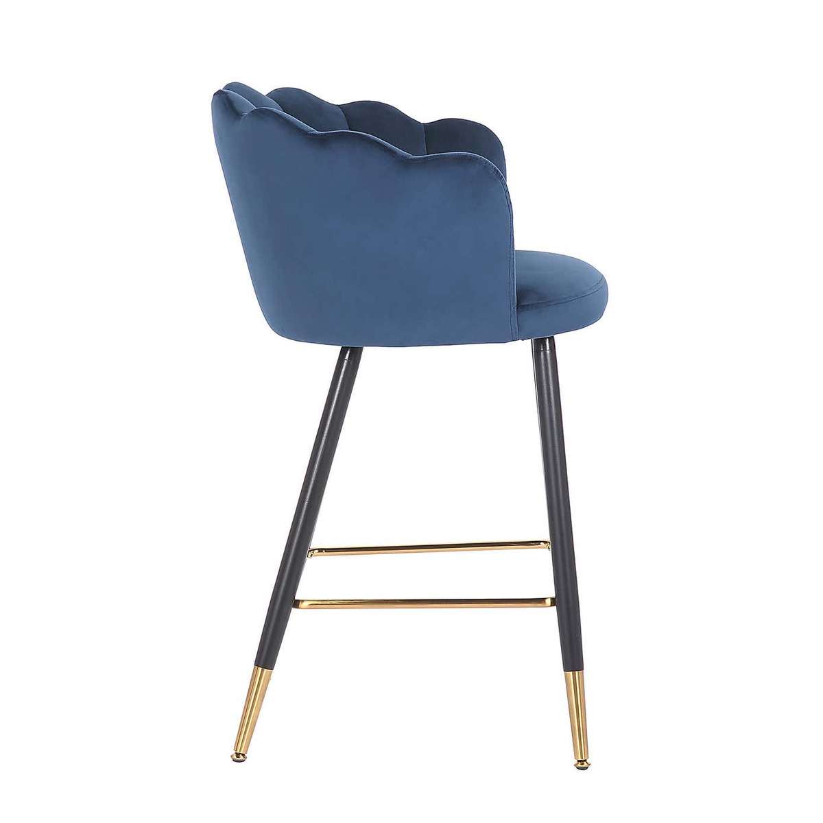 I love the midnight blue velvet finish of this bar stool, as it adds a touch of luxe to any space. Its scalloped backrest and plush upholstery give it a sophisticated yet inviting feel, perfect for both modern and eclectic interiors. It works well in contemporary kitchens, home bars, or even boutique-style cafes. For styling tips, pair it with metallic accents or matte black accessories to enhance its elegance, and consider stacking multiple for a cohesive look. Practical tips include choosing a setting with ample legroom and a sturdy surface, as the velvet fabric offers comfort but can require regular maintenance to keep it looking fresh.