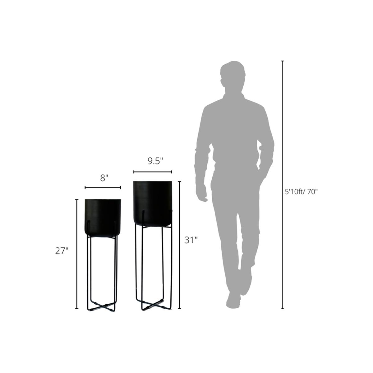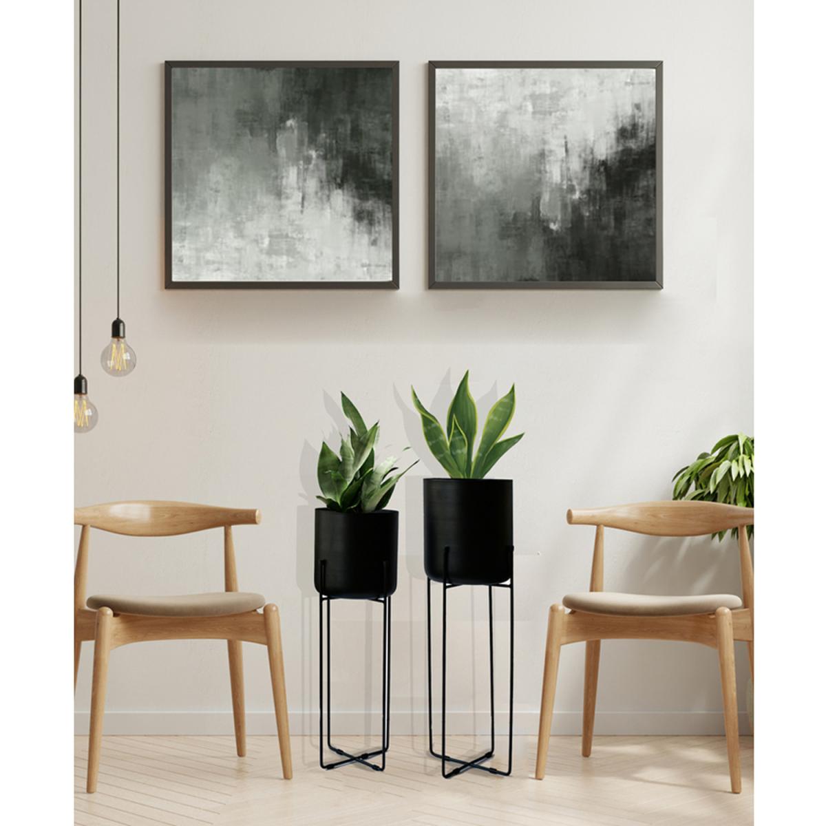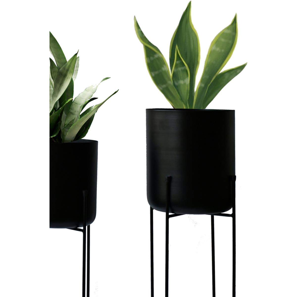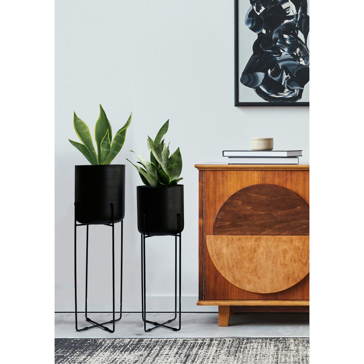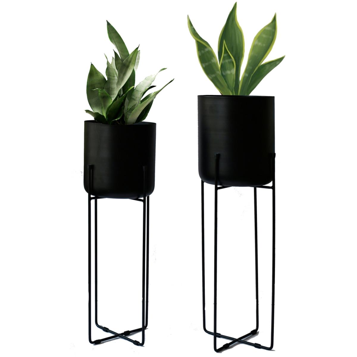 Vivid Set of 2 Black Planter with Stand - Black