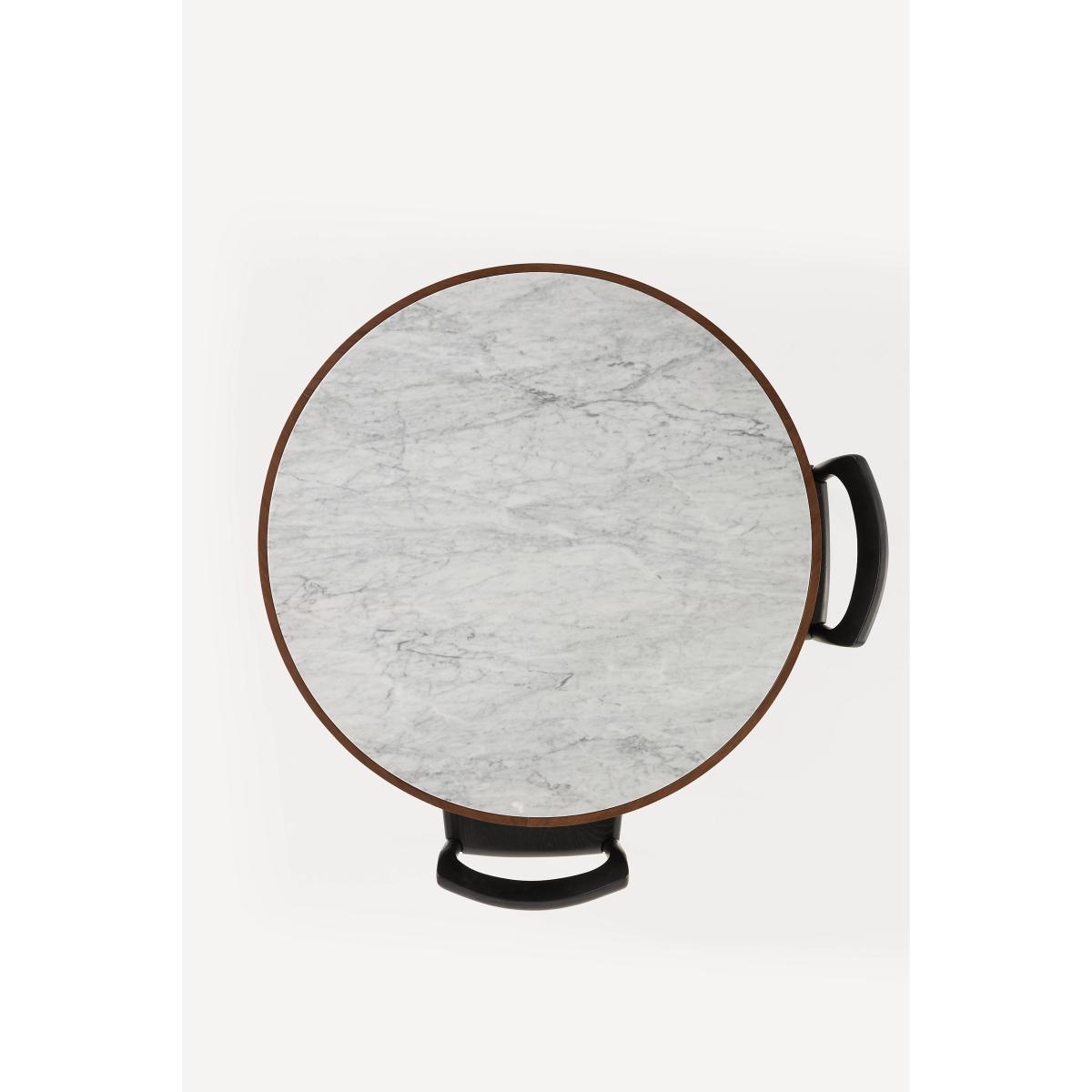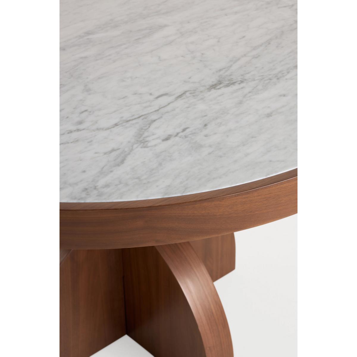 Featuring rounded edges and details, the Vivienne collection is a softly elegant addition to your home. * Because this furniture is crafted by hand, no two pieces are exactly alike. Please expect unique variations in colour, natural texture, and pattern (including woodgrain) from the imagery shown. * Bentwood base with walnut veneer reinforced with engineered hardwood * Carrara marble top * Sealed with clear lacquer for protection * Wipe clean with soft cloth. Avoid chemical cleaners * Address spills immediately with a dry, soft cloth. Natural stone is a porous material, and although it has been sealed, spills should be blotted promptly to minimise staining * Use trivets, coasters, placemats, and felt pads to help prevent scratches * This piece is intended for indoor use * No assembly required * Imported
