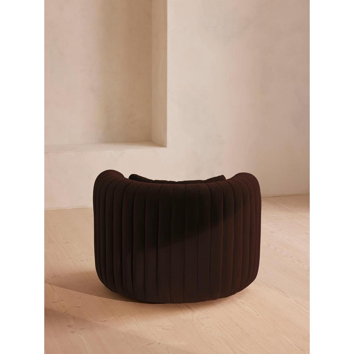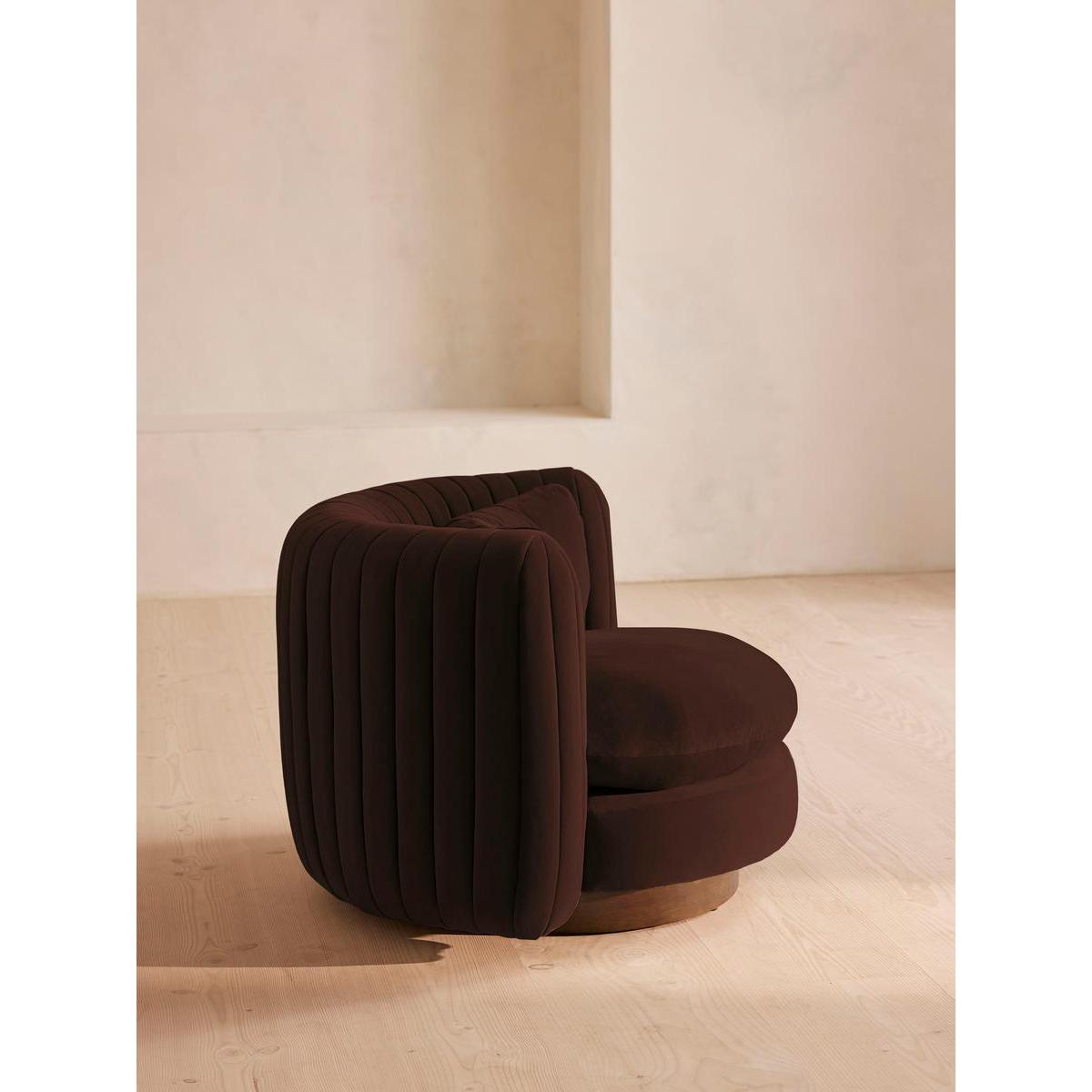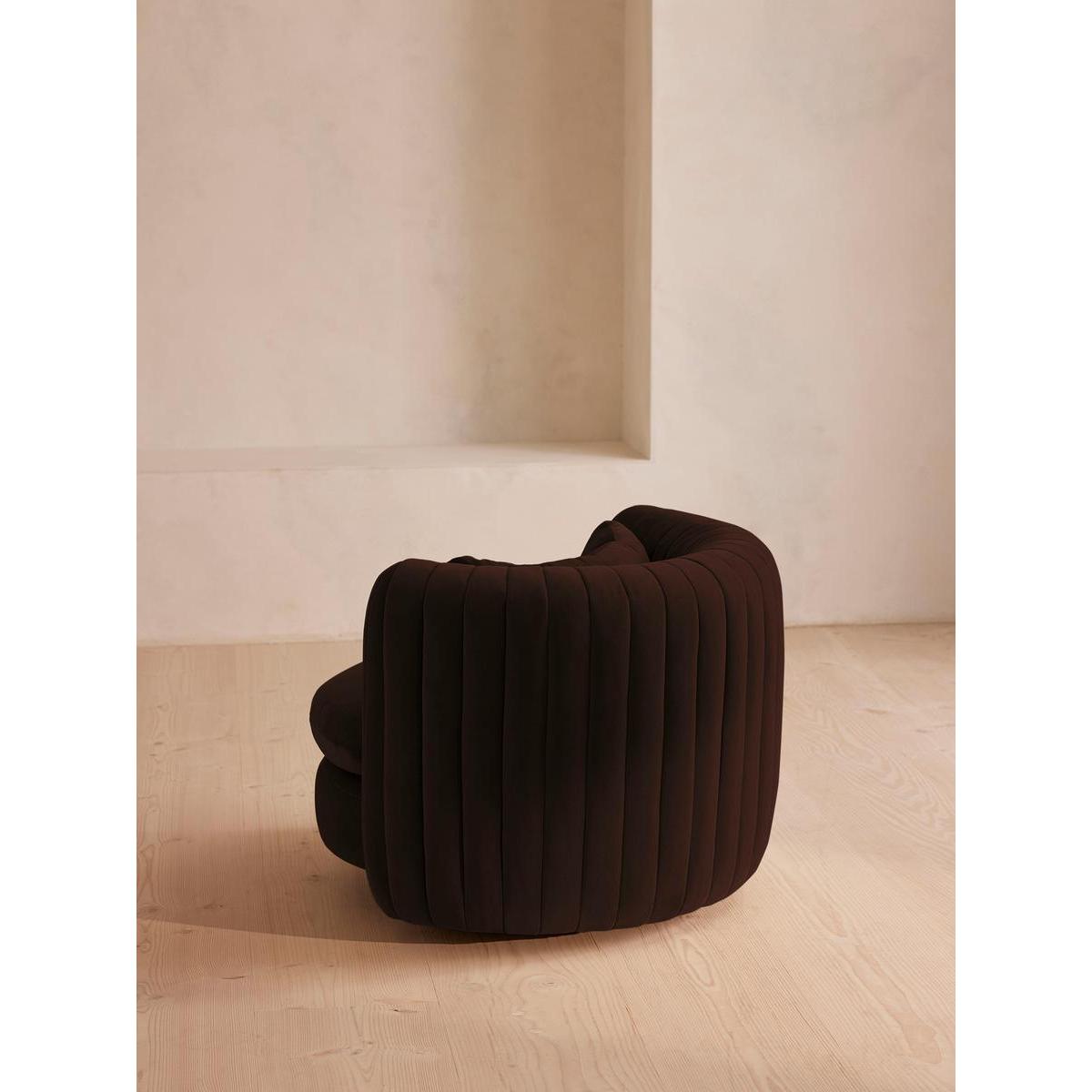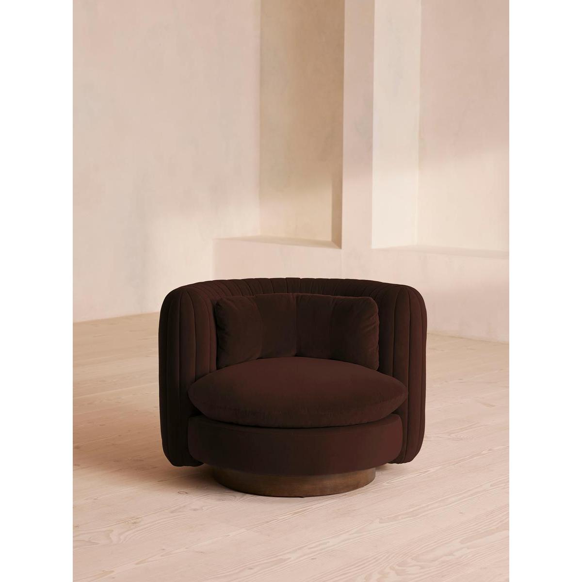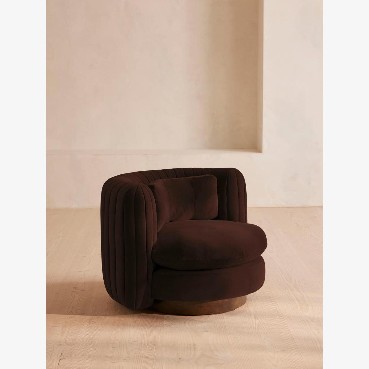 I’m a big fan of the Vivienne chair in chocolate velvet for its blend of sculptural form and comfort - it instantly anchors a room without overwhelming it. The rounded back and plush seat work particularly well in modern or mid-century schemes, pairing effortlessly with brass or matte black accents and natural timbers. To style, tuck a neutral linen throw over one arm and introduce a geometric cushion to echo the chair’s channel-stitched detail, then ground the look with a low-pile rug in warm, earthy tones.