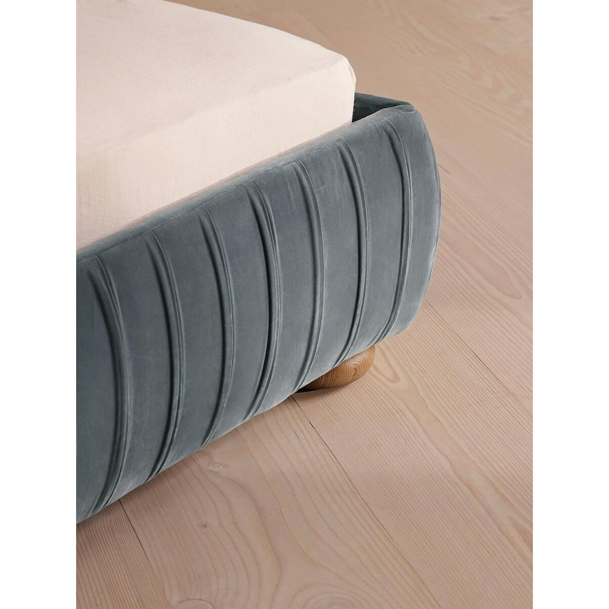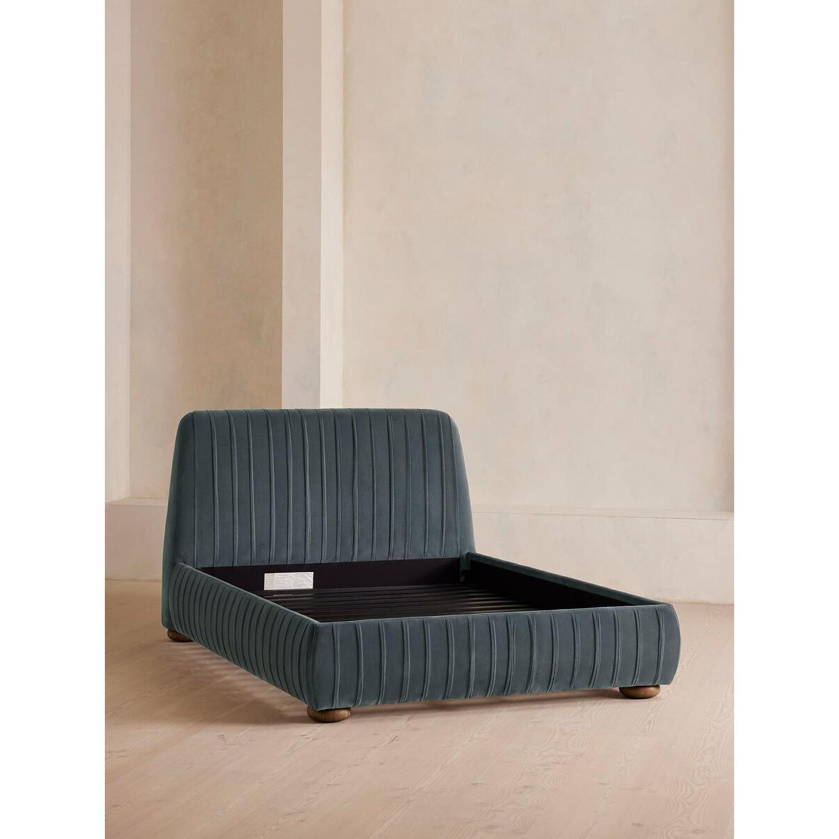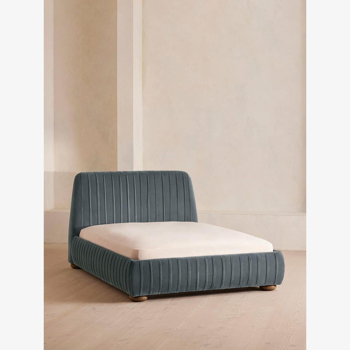 I love how the Vivienne bed brings a smart, textured feel without dominating the room - that soft grey-blue velvet feels both fresh and soothing. Its low, curved frame works brilliantly in contemporary, Scandi or mid-century schemes, especially against neutral walls or alongside warm timber floors. For styling, keep bedding crisp in white or pale grey linen and add a chunky knit throw or a couple of muted-tone cushions to play off the velvet. Position simple bedside tables in light wood or brass, hang pared-back artwork above the headboard, and finish with a soft, low-pile rug to make the space feel grounded and relaxed.