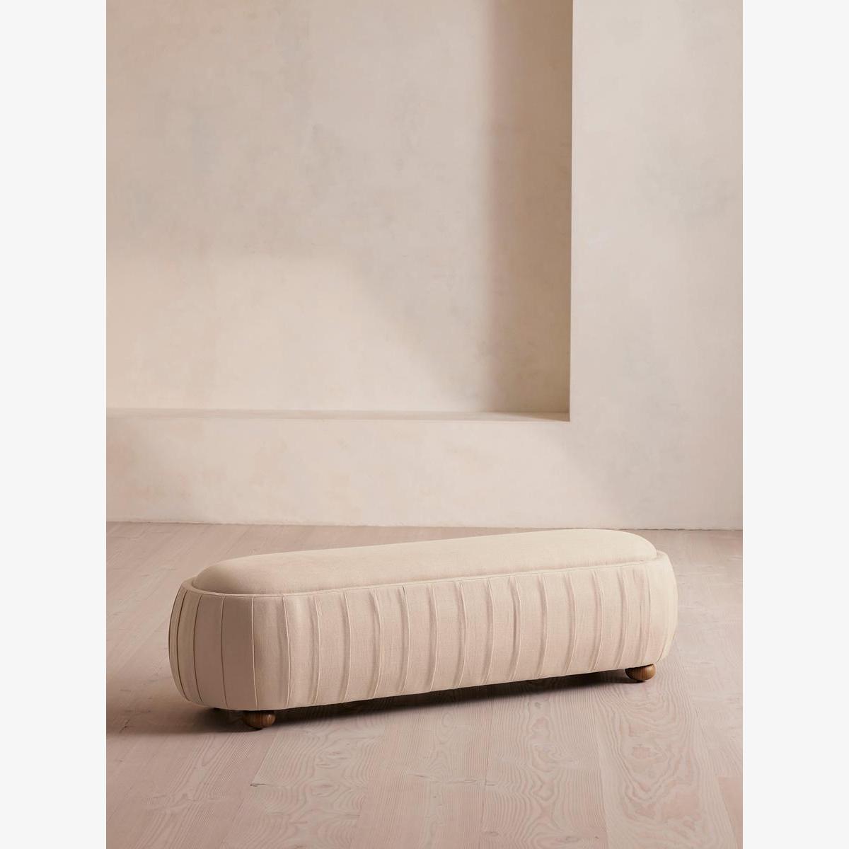 A rounded silhouette upholstered in linen is designed as an extension of our House favourite Vivienne rang Inspired by our members' favourite Vivienne sofa on the eighth floor of White City House, this bench is designed to perfectly complement the Vivienne bed. Its rounded silhouette comes fully upholstered in linen in a range of bespoke colours.