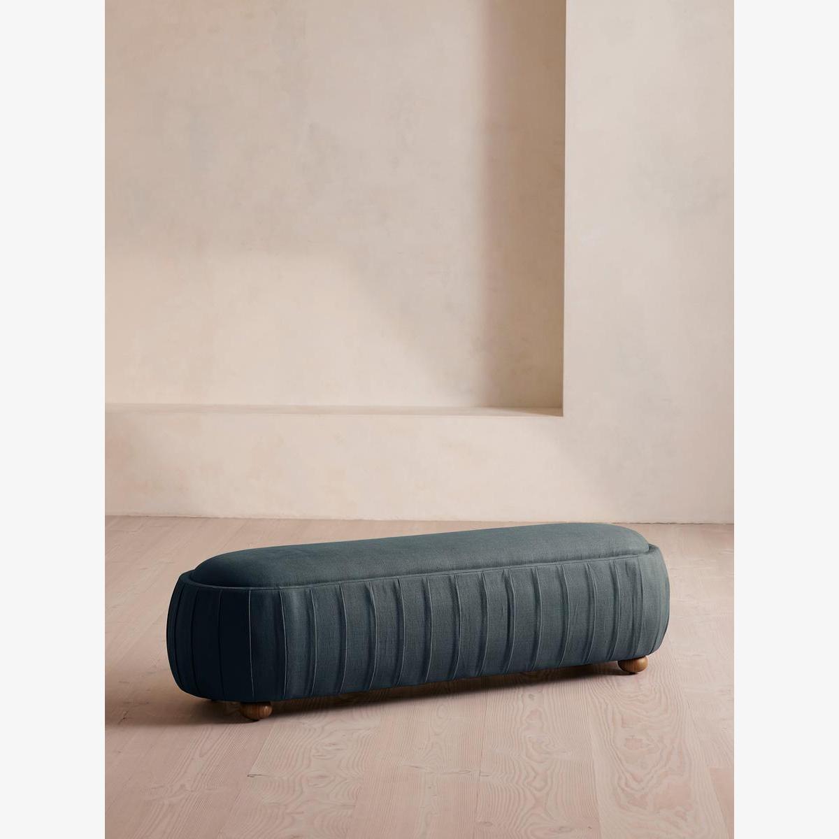 I’m a big fan of this Viv bench in Prussian blue linen for the way its gentle ribbing and deep hue add texture without overwhelming a room. It sits equally well in a pared-back Scandi scheme or a more traditional living space, grounding lighter woods and neutrals while tying in darker accents. For styling, try it at the foot of the bed with a neat folded throw and a couple of scatter cushions in complementary shades (think ochre or soft blush). In an entrance hall or living area, top it with a slim tray for keys or a stack of coffee-table books to keep things looking pulled together yet practical.