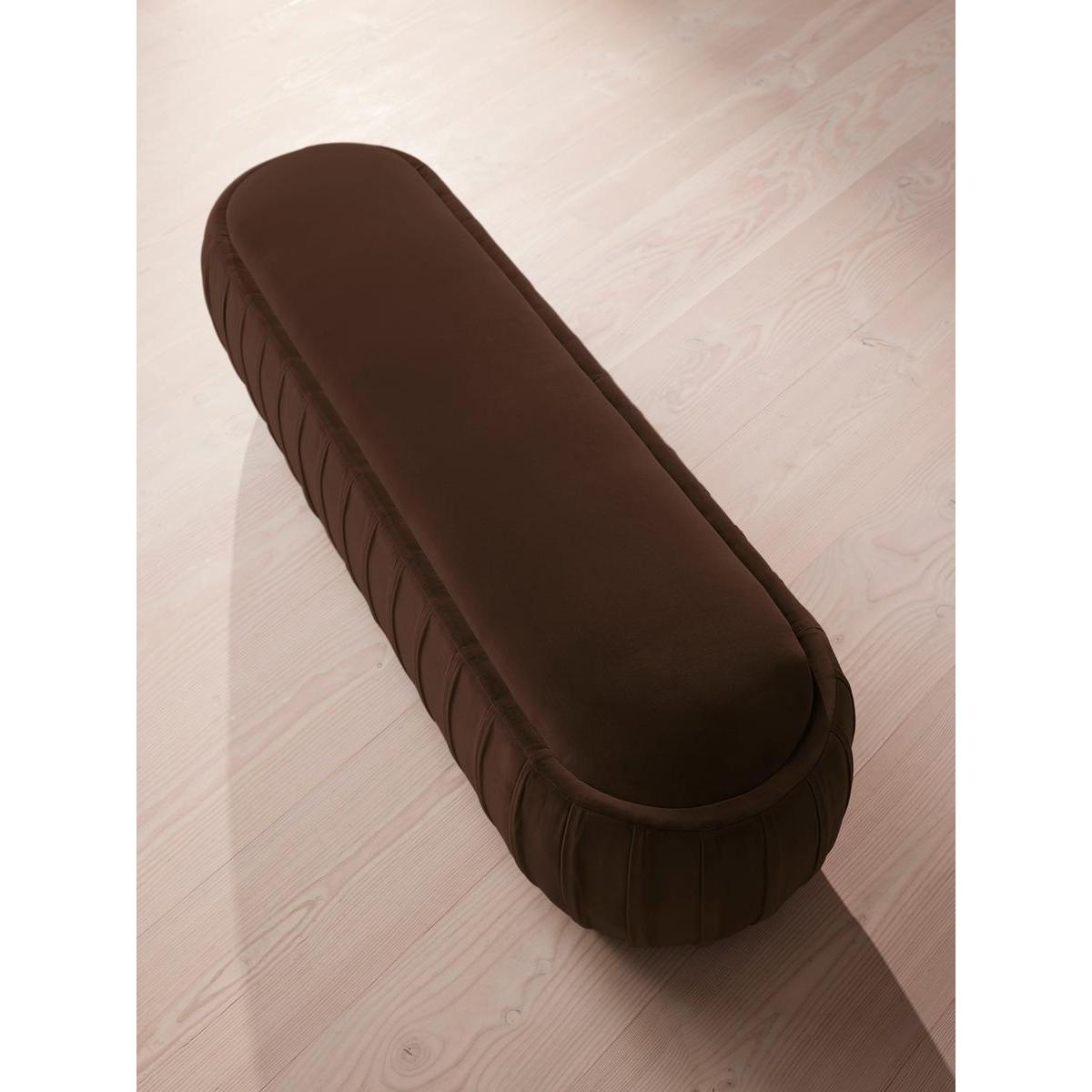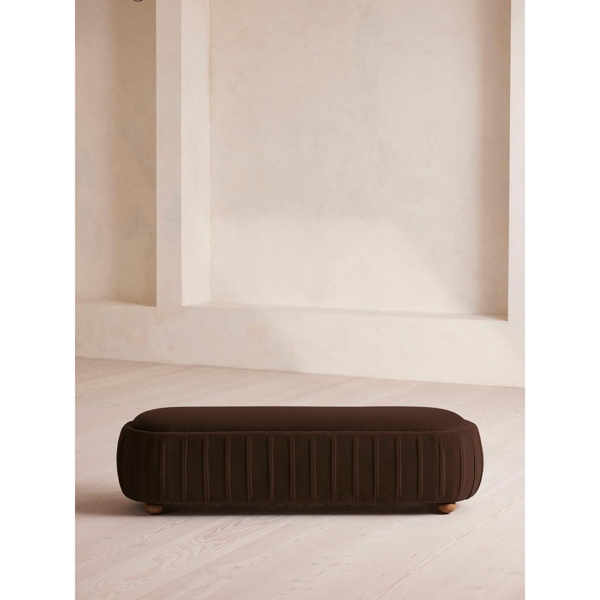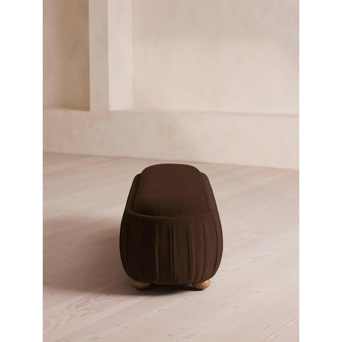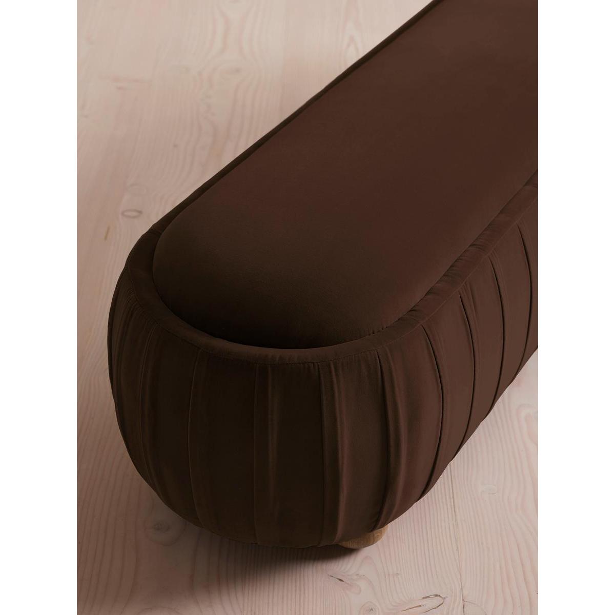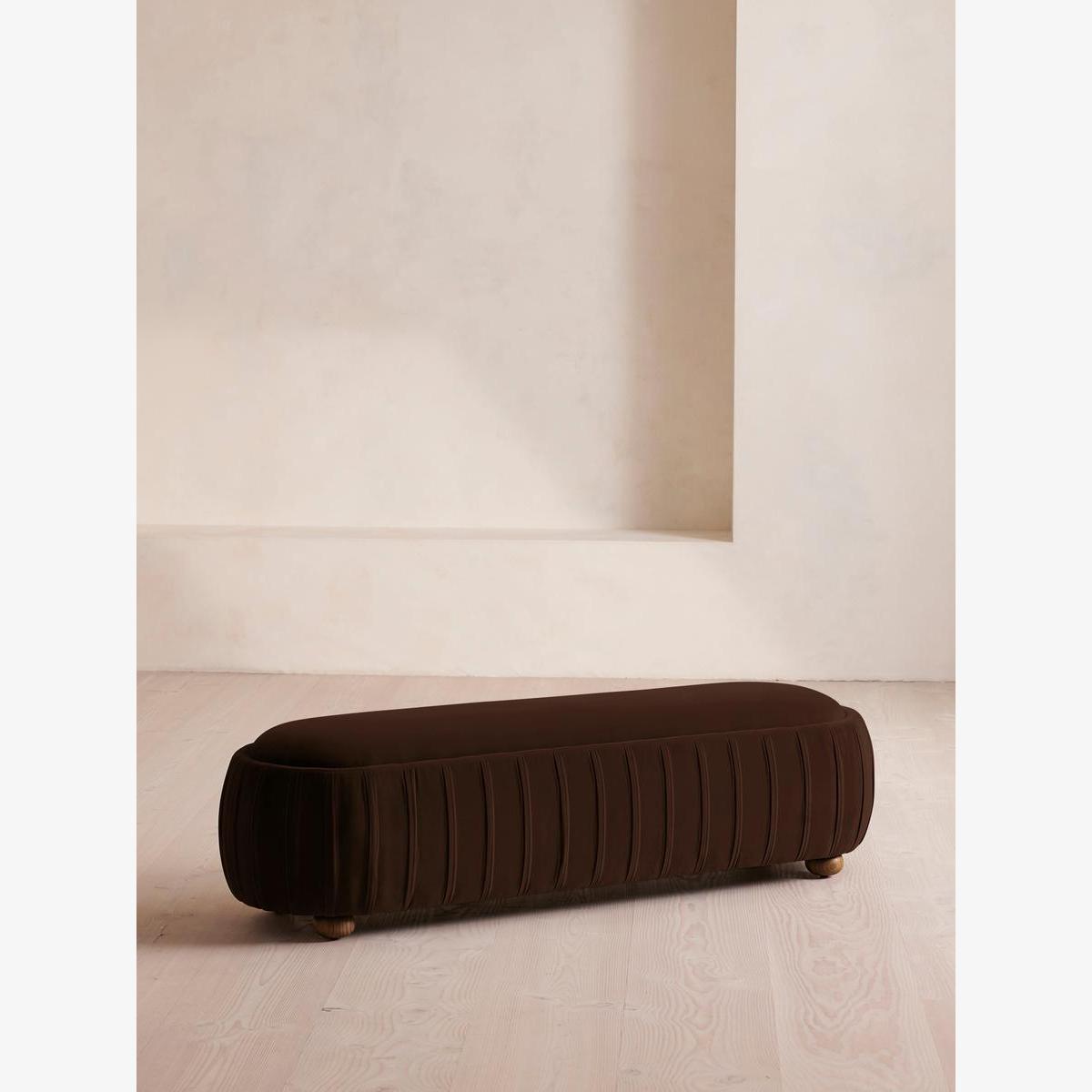 A rounded silhouette upholstered in tactile velvet is designed as an extension of our Vivienne range. Inspired by the Vivienne sofa that sits on the eighth floor of White City House, this bench is designed to perfectly complement the Vivienne bed. Its rounded silhouette comes fully upholstered in velvet in a range of bespoke colours.