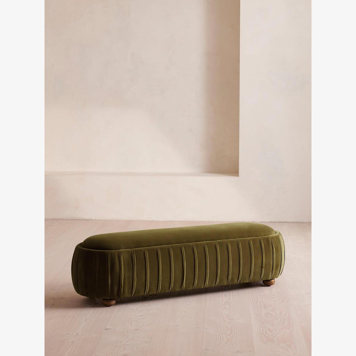 A rounded silhouette upholstered in tactile velvet is designed as an extension of our House favourite Vivienne range. Inspired by our members' favourite Vivienne sofa on the eighth floor of White City House, this bench is designed to perfectly complement the Vivienne bed. Its rounded silhouette comes fully upholstered in velvet in a range of bespoke colours.
