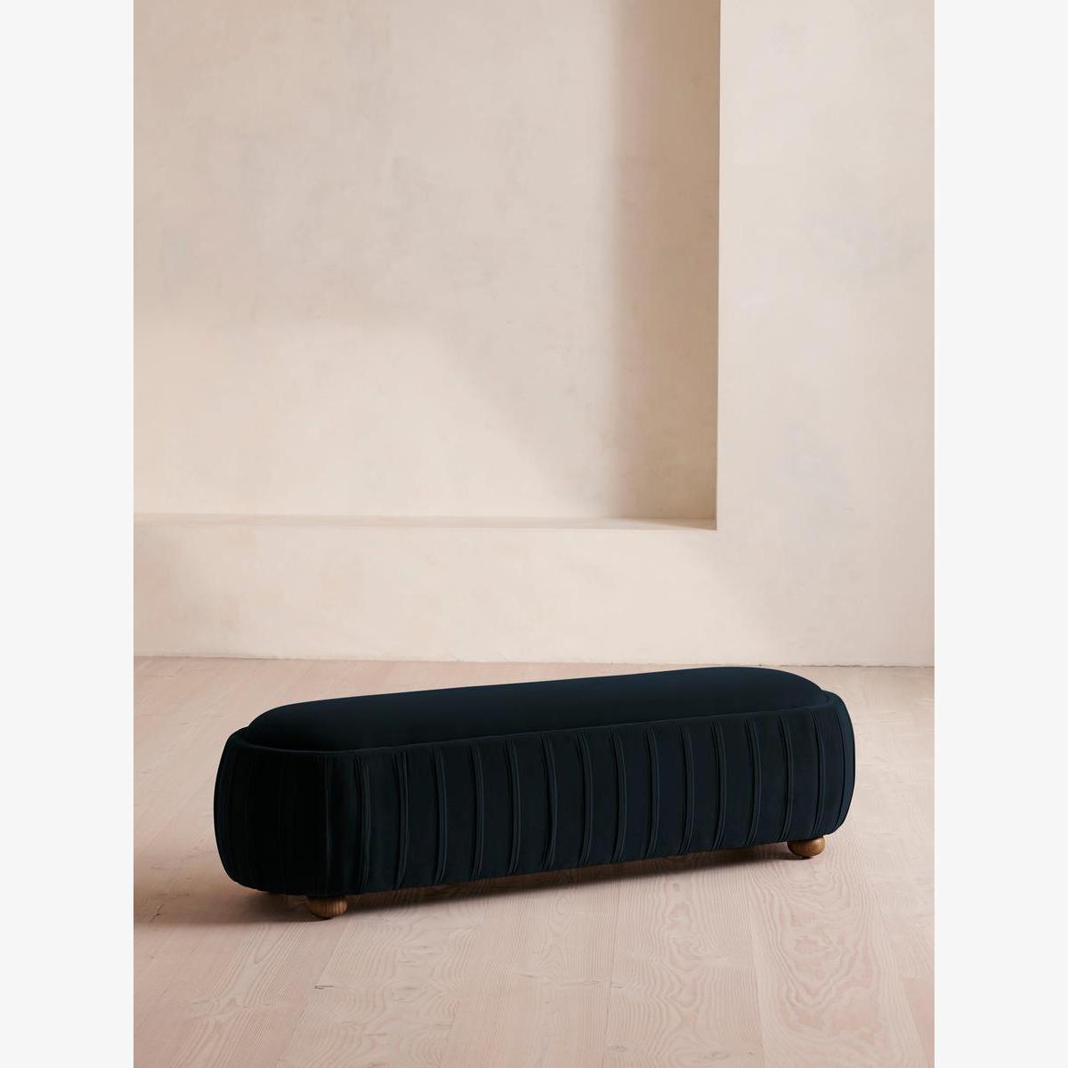 A rounded silhouette upholstered in tactile velvet is designed as an extension of our House favourite Vivienne range. Inspired by our members' favourite Vivienne sofa on the eighth floor of White City House, this bench is designed to perfectly complement the Vivienne bed. Its rounded silhouette comes fully upholstered in velvet in a range of bespoke colours.