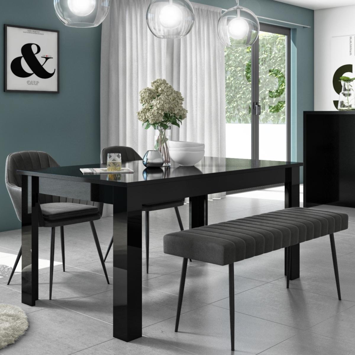 This Bundle Includes 1 x Vivienne Black High Gloss Dining Table2 x Logan Grey Faux Leather Dining Chairs1 x Logan Grey Fuax Leather Dining Bench Dining Table Description Quickly make extra dining space with the extension leaf mechanism. Clean design with a sleek finish adds a modern touch to the dining space Smooth high gloss finish – super easy to wipe clean. In jet black it easily coordinates with other dining furniture. Including just the table you're free to pair it with the chairs of your choice. Dining Table Information. Dimensions (closed). H75 x W160 x D90 cm Dimensions (extended). H75 x W200 x D90 cm Material. Wood combination Finish. Black high gloss Assembly required. Yes Dining Chair Description Inludes x 2 slate grey faux leather dining chairs with arms. Two tone grey and black are the perfect constrast. The faux leather is full of character with its stylish appearance. Comfortable padded seats and armrest Sturdy frame construction. Dining Chair Description. Number of chairs. 2 Dimensions. H85 x W59 x D45 cm Material. Faux leather and; metal Finish. Two tone - Grey and; Black Assembly required. Yes. Dining Bench Description. Faux leather dining bench to suit a range of modern and traditional styles. Sturdy construction Perfect as a dining seat or occasional seating in hallways bedrooms and more. Authentic leather look. Contemporary vertical stitch detailing. Wide variety of coordinating tables and chairs available. Dining Bench Information. Dimensions. H52 x W120 x D38 cm Maximum Load Weight. 150kg per chair Material. Faux leather and; metal Finish. Luxury slate grey faux leather and; smooth black metal legs Assembly required. Yes Range. Logan..