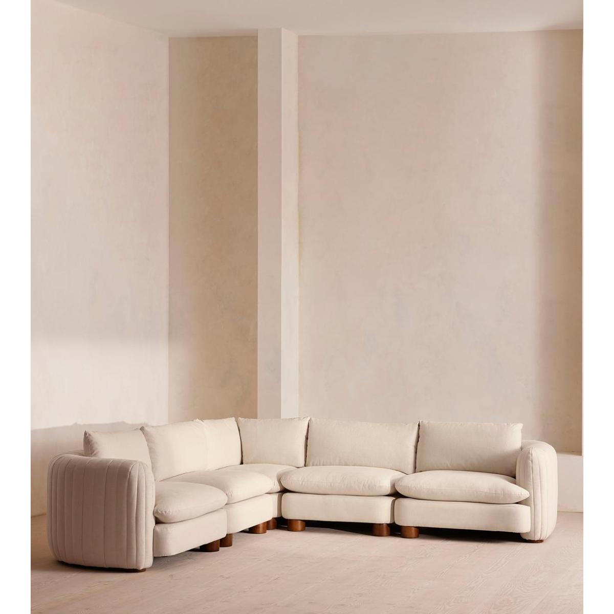 A House favourite, now with a deeper sit, this linen-wrapped modular sofa is designed to adapt to your space. A member favourite, the Vivienne sofa is heavily inspired by London's White City House. Characterised by a low, wraparound silhouette built for comfort and a new deeper sit, this modular design is made to work with your room, piecing together with other sections to create the sofa of your choice.