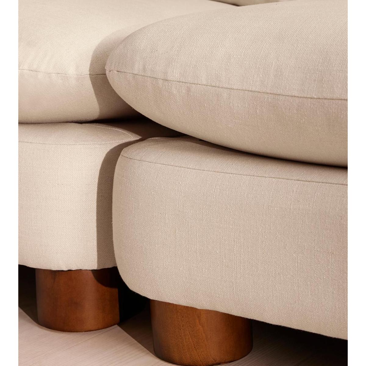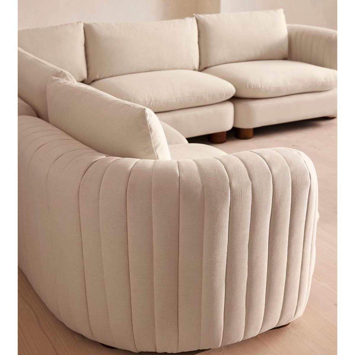 I love this sofa for its versatility and understated elegance. The linen fabric in bisque delivers a soft, neutral tone that pairs beautifully with both contemporary and classic interiors. It’s perfect for bringing a relaxed yet sophisticated vibe to living spaces that aim for a welcoming feel. The modular design allows for customisation, making it ideal for larger open-plan areas or more intimate corners. For styling, consider adding textured cushions or throws in complementary colours to break up the neutral palette and add visual interest. It works particularly well with minimalist, Scandi, or modern interiors but can also be softened with vintage or boho accessories for a more eclectic look. Its durable linen fabric ensures both comfort and longevity, making this a practical choice for family rooms or frequent entertaining.
