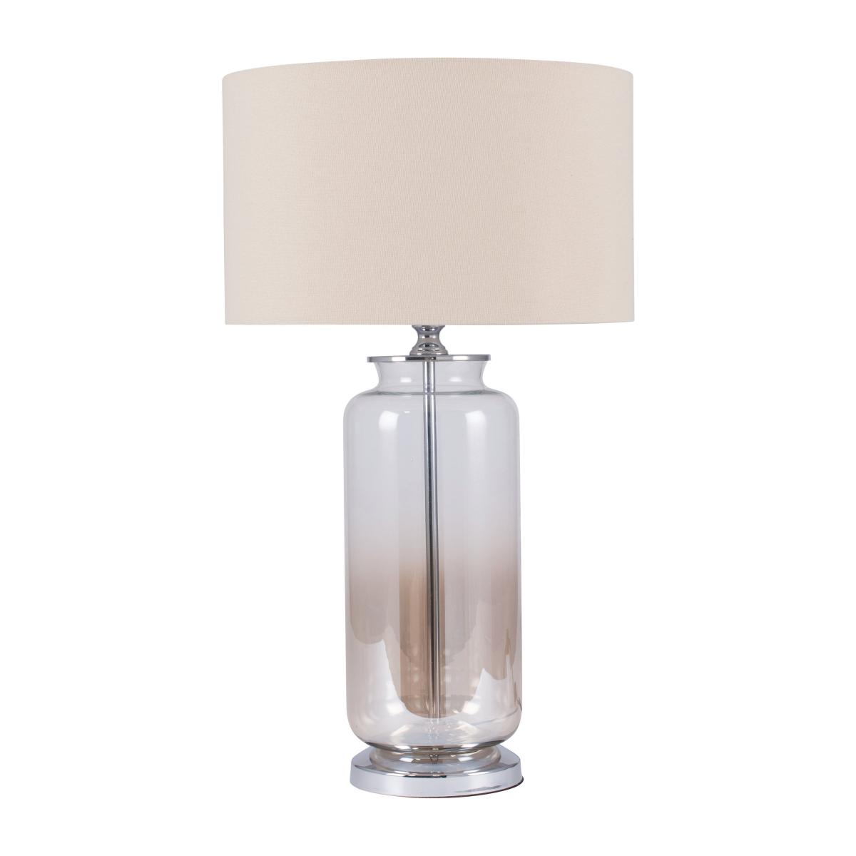 Add to your room's ambience by lighting it up with the Vivienne table lamp. The ombre smoked glass and cylinder fabric shade help give the lamp a modern look, great for fitting in with any home interior. It will be sturdy lighting solution too!.
