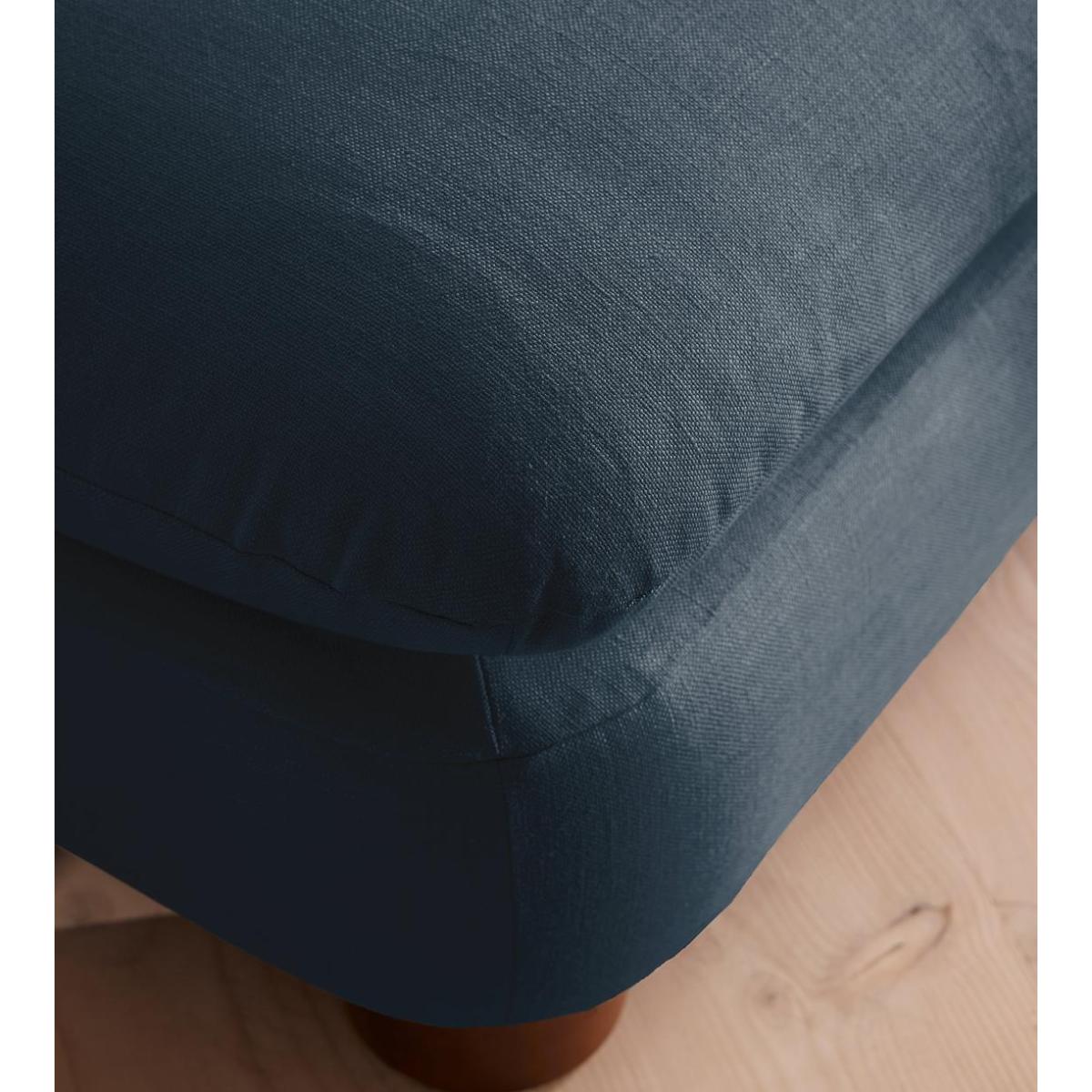 I love the Vivienne ottoman for its rich Prussian blue linen, which adds a sophisticated pop of colour to both modern and traditional interiors. It works particularly well in living rooms and bedrooms where it can serve as an additional seating option or a stylish footrest. Pair it with muted, neutral tones for a timeless look, or mix it with other colours and textures to create a more eclectic space. Practical styling tips include placing it next to a sofa or armchair, and layering with textured cushions or throws for added comfort and visual appeal. Its compact size and classic shape make it versatile, while the linen upholstery ensures it feels fresh and tactile.