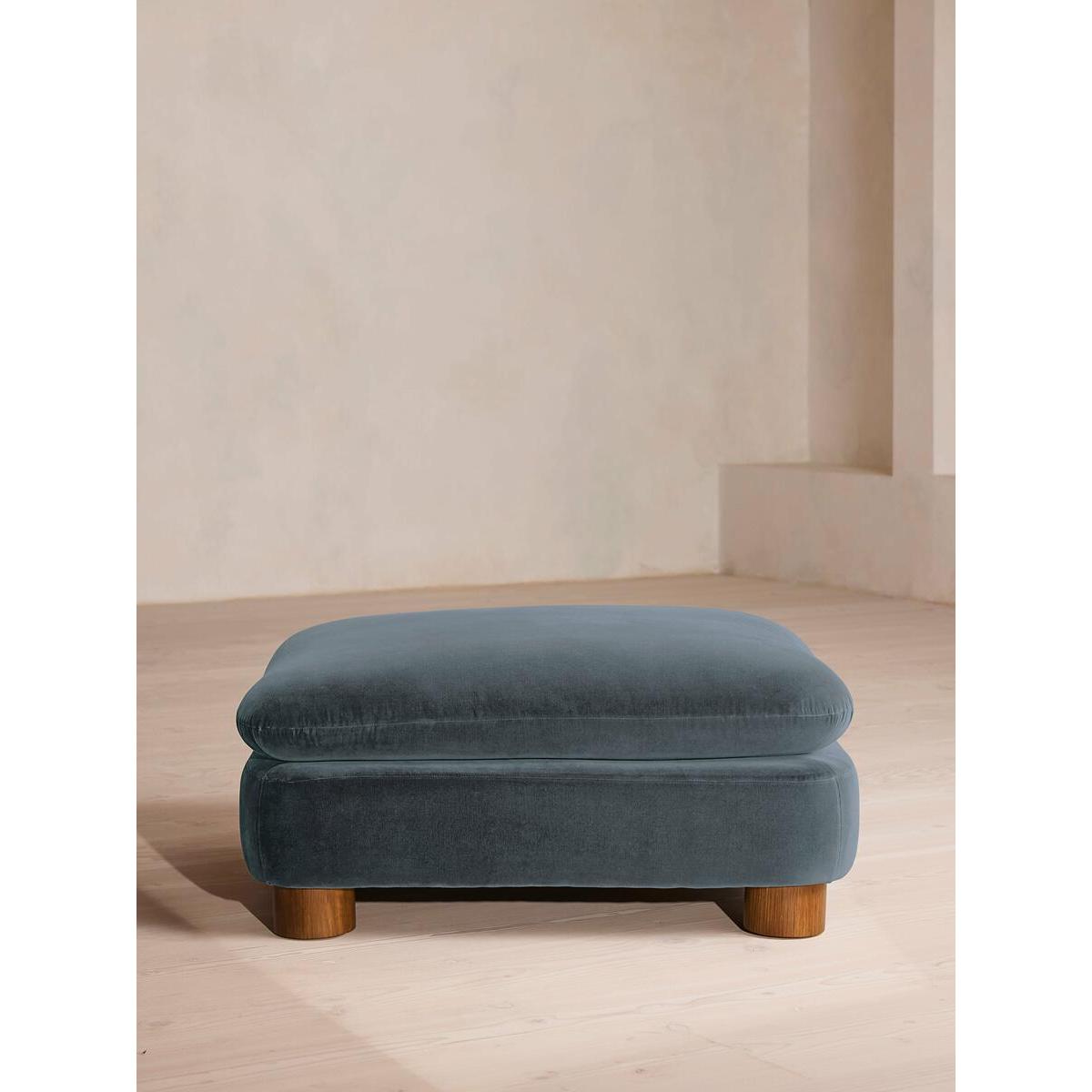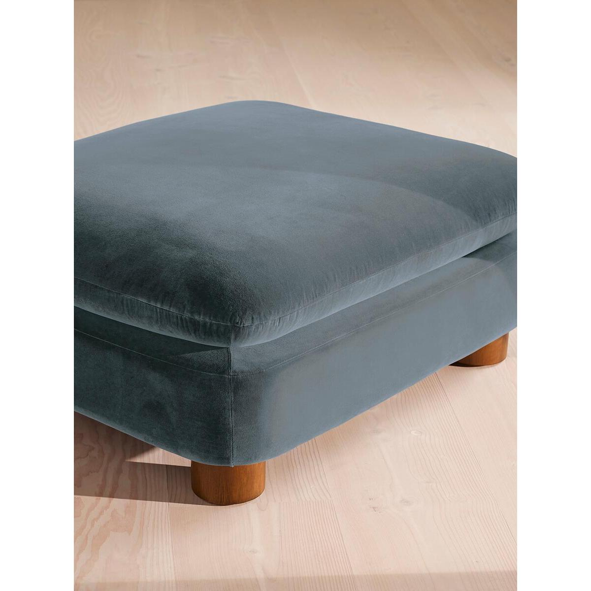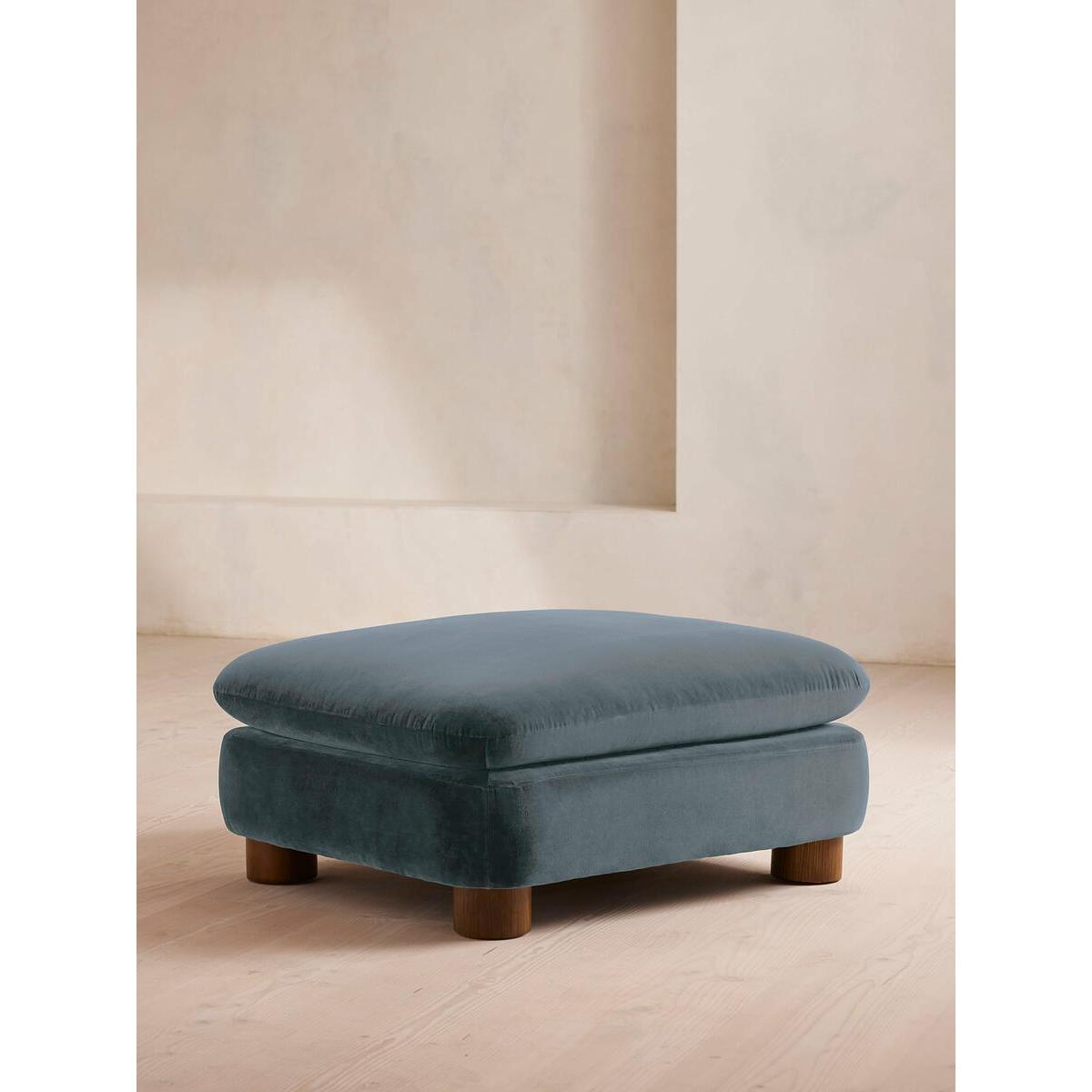 I love this ottoman for its versatile colour and luxurious velvet finish, which adds a sophisticated touch to a range of interiors. The grey-blue shade works particularly well in contemporary or understated traditional schemes, providing a calm, neutral accent that can complement both warm and cooler palettes. It’s perfect for use as a footrest, extra seating, or even as a small coffee table paired with a tray. For styling tips, try grouping it with a matching or contrasting armchair, or position it at the foot of a bed to create a cosy, inviting feel. Its compact size and soft texture make it both practical and inviting in living rooms, bedrooms, or even dressing areas.