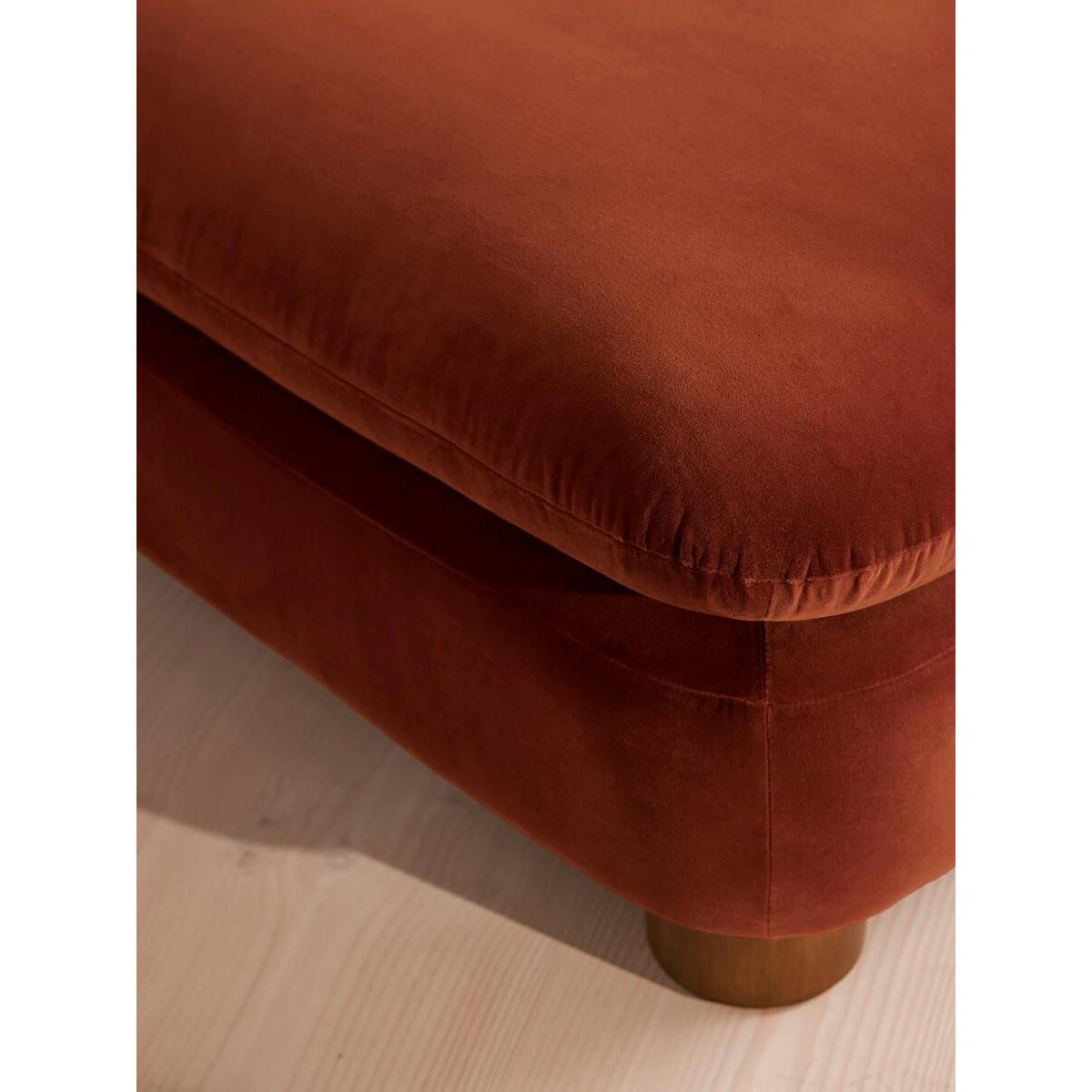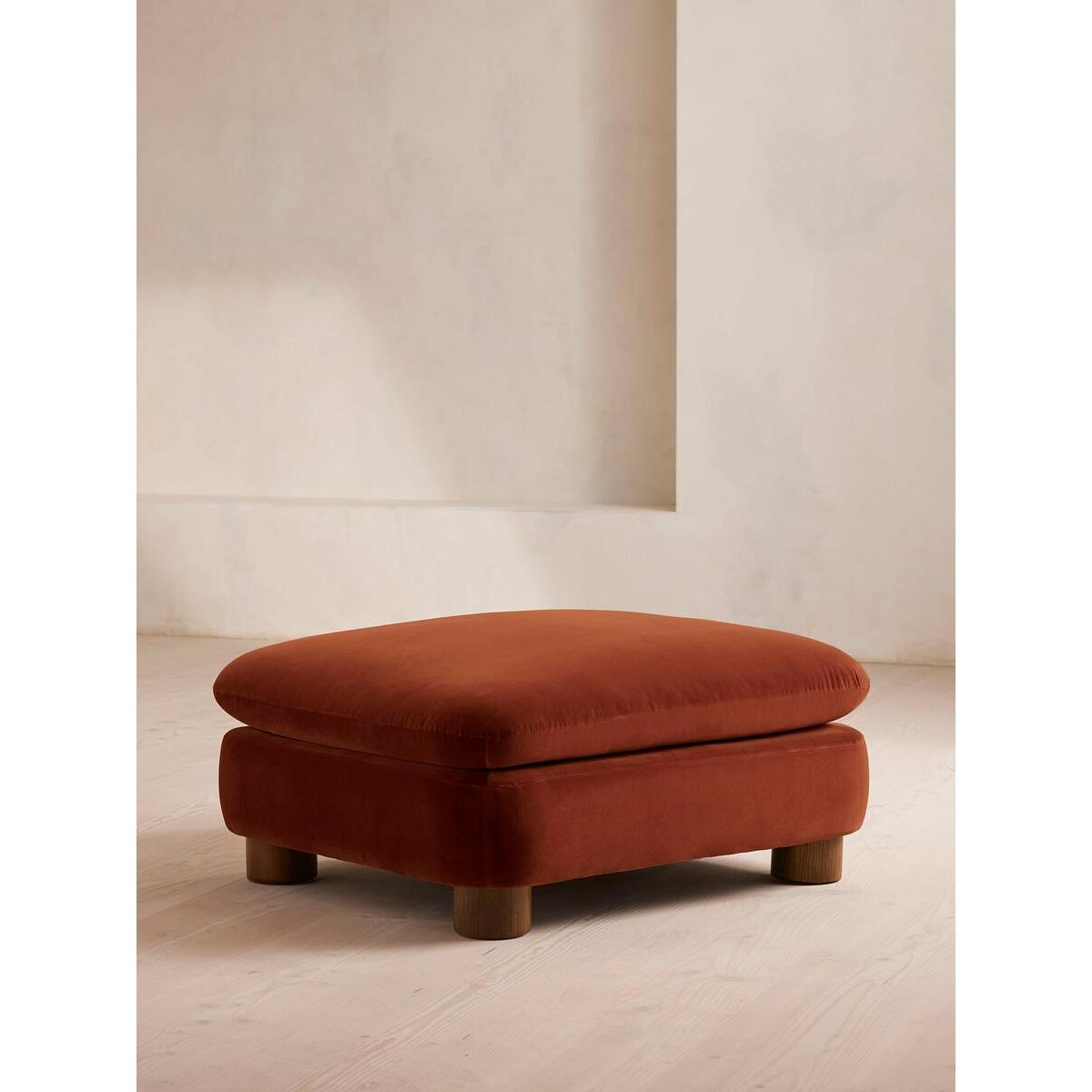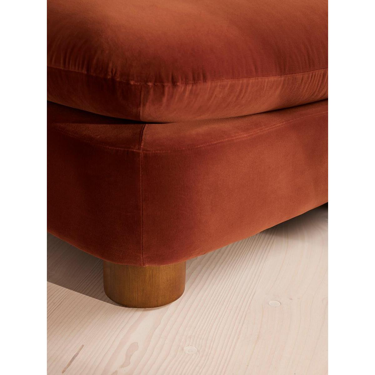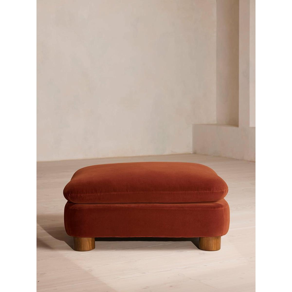 I love this pouffe for adding a pop of colour and texture to both modern and eclectic interiors. The deep rust velvet feels rich and inviting, making it a versatile piece that can serve as extra seating, a footrest, or even a statement side table with a tray on top. It works particularly well in neutral schemes where it can act as a focal point or in spaces with other warm tones for a layered look. Practical styling tips include pairing it with a soft throw and a couple of decorative cushions to create a cosy nook, or using it to inject colour into a monochrome room. Its compact size makes it ideal for smaller living areas or as an accent piece in bedrooms and dressing rooms.
