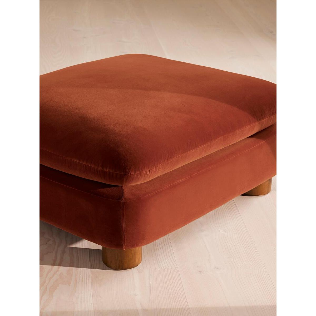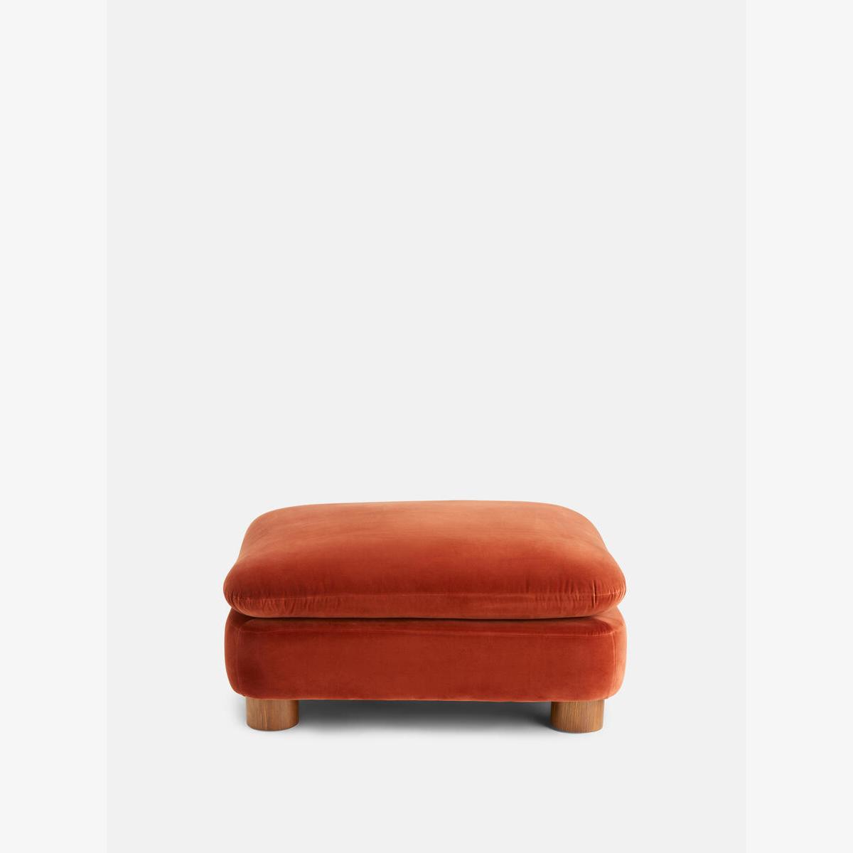 The eighth floor at White City House forms the inspiration for the Vivienne ottoman. Upholstered in velvet, it's finished with cylindrical legs. Coordinate with other pieces in the Vivienne collection for the full effect, or stand it alone as an alternative seating spot. Velvet upholstered ottoman Designed in-house Cylindrical legs Part of the Vivienne collection Inspired by White City House