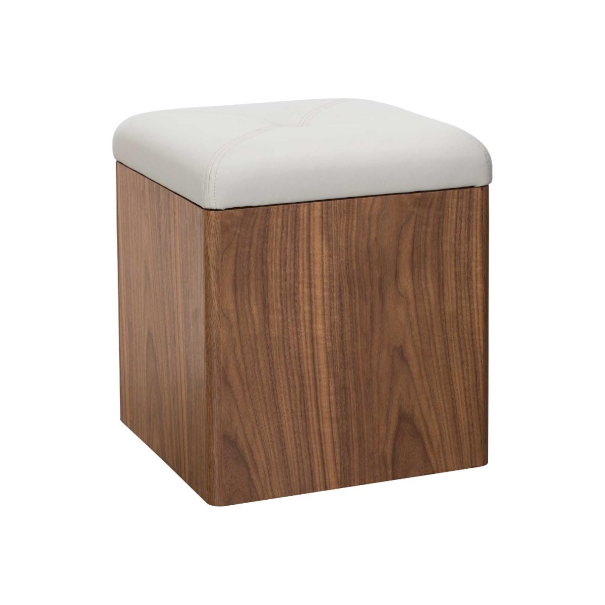 Design. A gorgeous addition to the matching dressing table, or a handy extra seat to have around the house, the Vivika stool features a cool and contemporary design. Its foam filled top is comfortable and supportive, upholstered in grey faux leather for a smooth finish. The walnut base offers warmth and rich colour to the look, making it perfect for a wide range of colour schemes. Clean and compact, the stool can be tucked away easily when not in use.