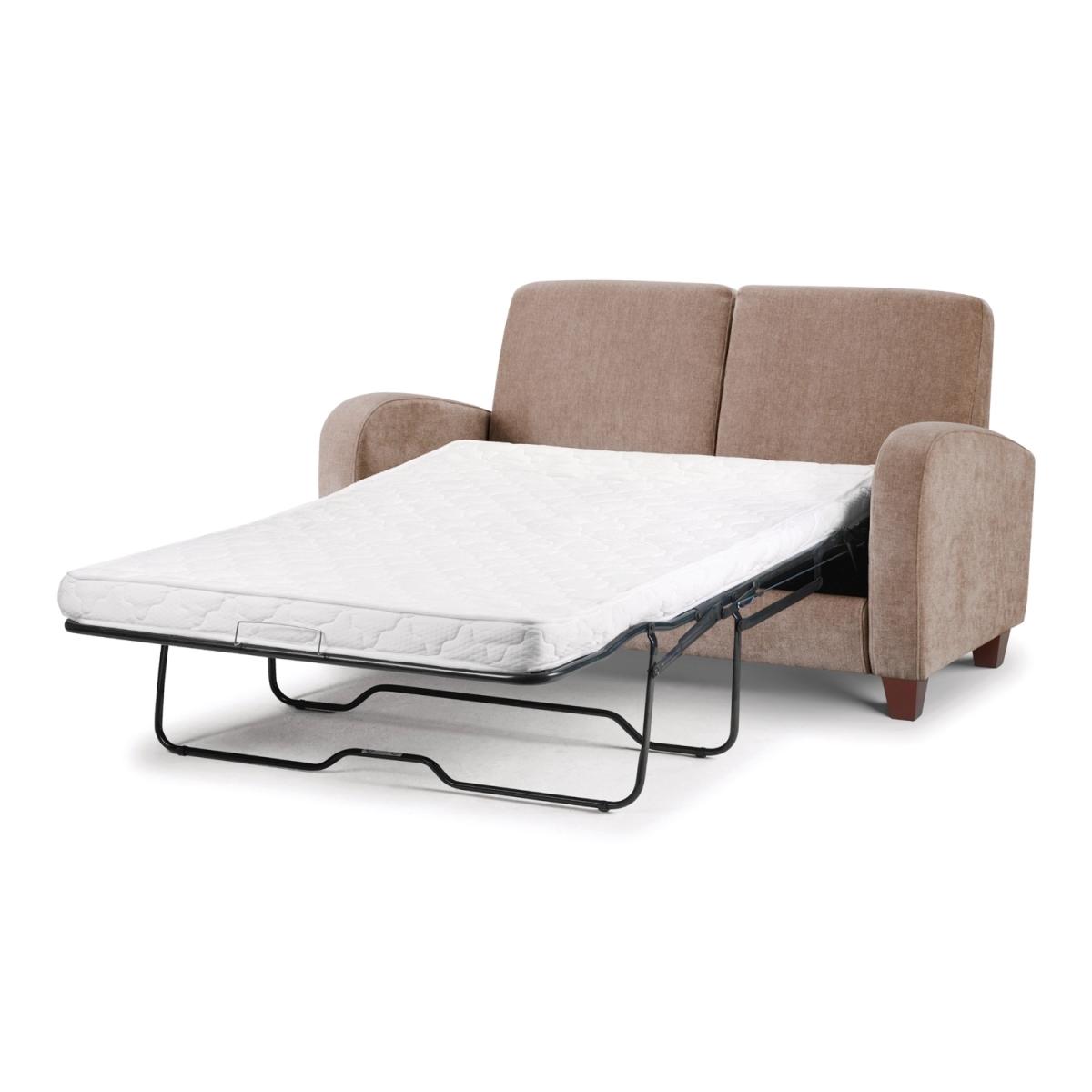 Add a touch of modern elegance to your living area with this Vivo Fold Out Sofa Bed. Stylish and practical this sofa features a sumptuously comfortable cushioned seat in beautiful chenille fabric and durable tapered brown feet. Sumptuously soft and inviting, its padded seat, armrests and back rest will maximise comfort, while ensuring that this sofa is both sturdy and reliable. In addition, this naturally toned sofa will complement a variety of interior styles as well as fitting perfectly with other furniture in your home. You'll always be prepared for house guests or sleepovers with this sofa bed - simply open the bottom to reveal a double bed mattress, meaning you can convert your living room into a bedroom in no time!Great for movie marathons at the weekends, TV dinners and cosy nights in this sofa will become a much loved and supportive family favourite in your home. So, find the time to unwind and sink yourself into this irresistible sofa, you deserve it.