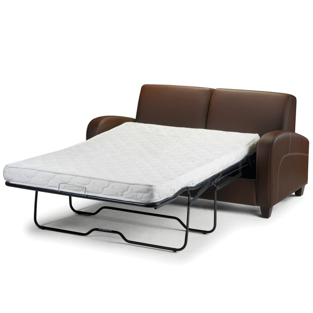 This Julian Bowen Vivo Sofabed is luxurious and comfortable, upholstered in a soft touch chestnut brown faux leather and it incorporates a hidden fold out metal bed frame. Quick to open, you can easily have a 120cm wide mattress, meaning you will always be prepared for house guests; convert your living room into a bedroom in no time!
