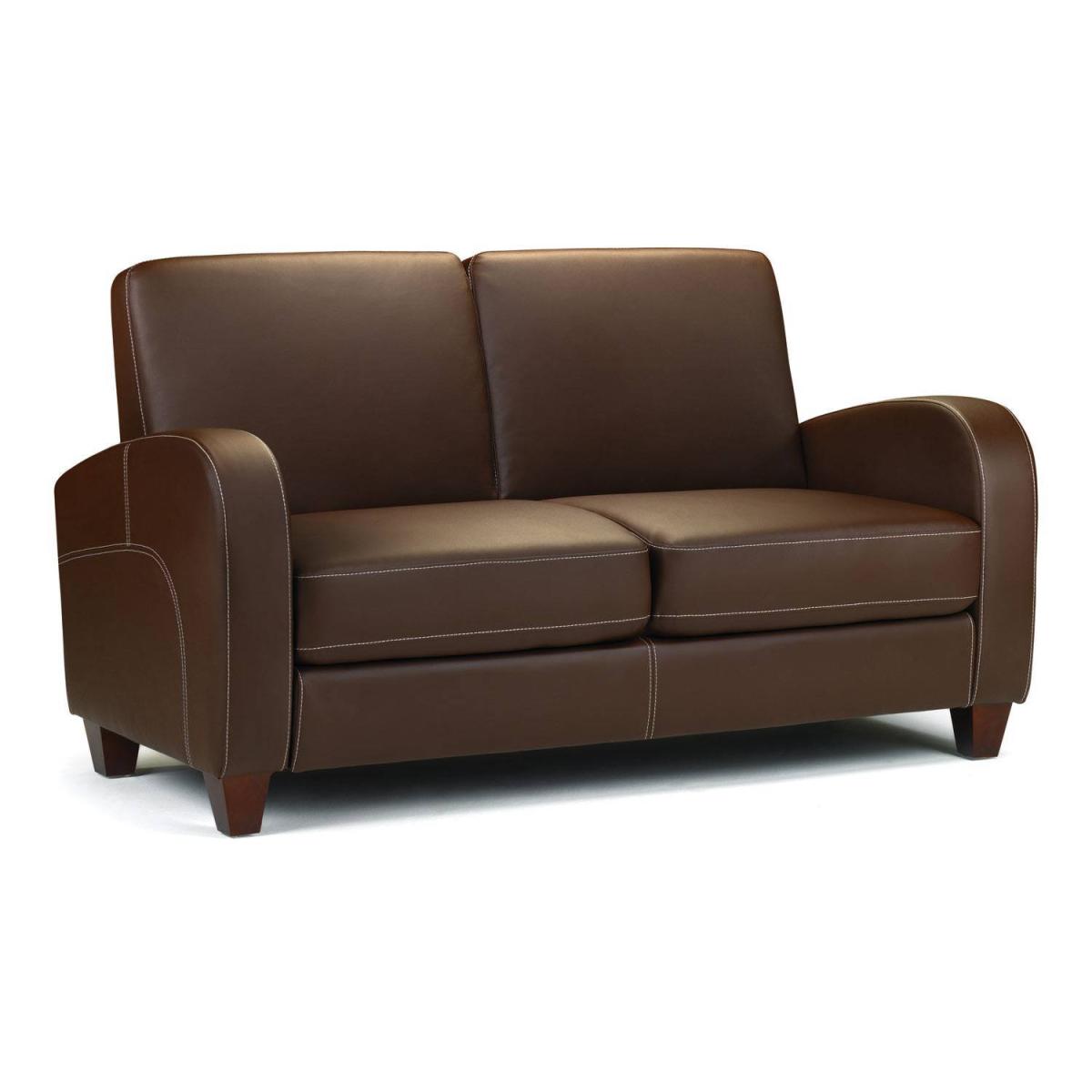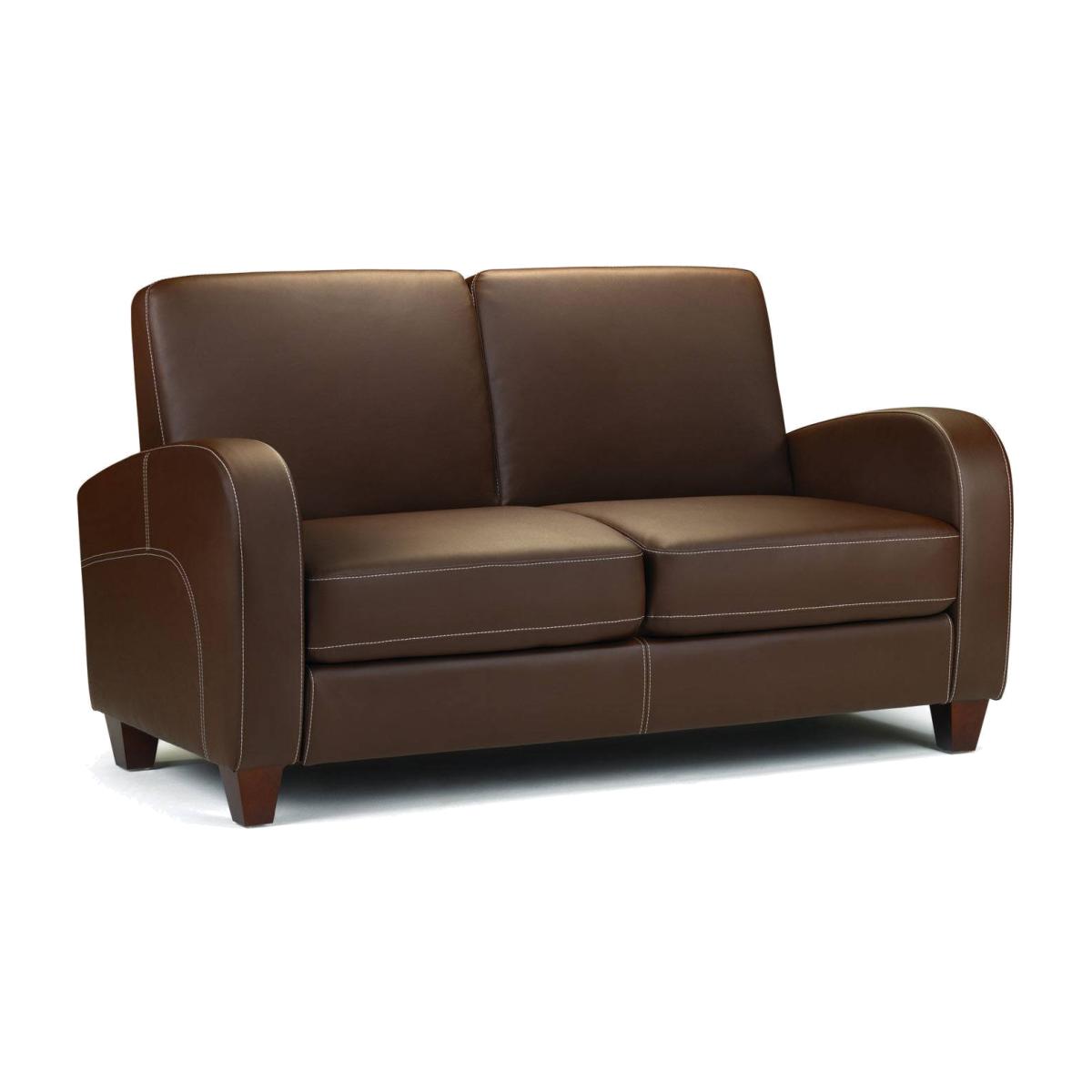 Add a touch of modern elegance to your living area with this Julian Bowen Vivo Chestnut Two Seater Sofa. Stylish and practical this sofa features a sumptuously comfortable cushioned seat in beautiful faux leather fabric and durable small brown feet. You can easily remove the cushions and clean them, so you no longer need to worry about spills. With its stitch detailing, pristine tailoring and high supportive armrests this chair will give you that cosy feeling, keeping you comfortable whether you are reading or watching TV.This naturally toned sofa will complement a variety of interior styles as well as fitting perfectly with other furniture in your home. Sumptuously soft and inviting, its padded seat, armrests and back rest will maximise comfort, while ensuring that this sofa is both sturdy and reliable. Great for movie marathons at the weekends, TV dinners and cosy nights in this sofa will become a much loved and supportive family favourite in your home. So, find the time to unwind and sink yourself into this irresistible sofa, you deserve it.
