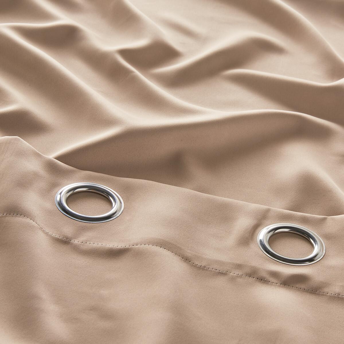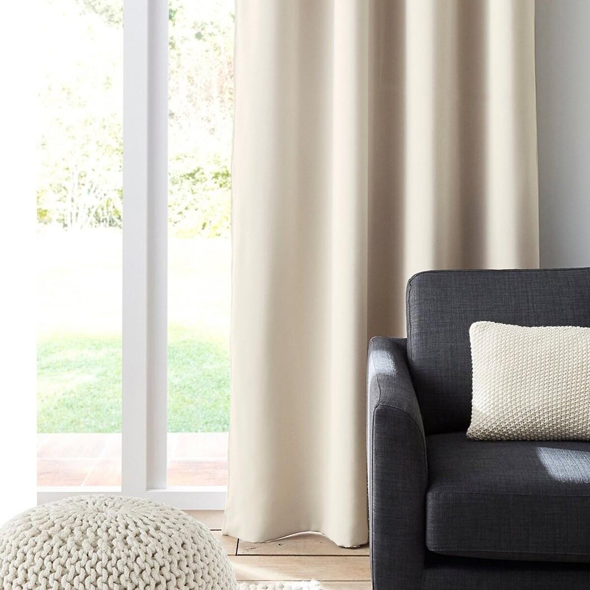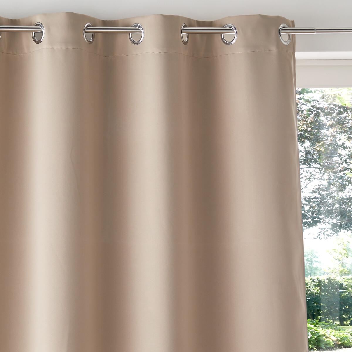 A 100% polyester, blackout curtain (darkening for light colours) to keep out the light. This blackout curtain blocks out light and keeps your home private. Perfect for a bedroom without shutters. Some colours block light better than others, which is why choosing the colour of your curtain is important.. To guarantee an excellent level of blackout, we recommend that you opt for dark curtains (black, grey, navy), which are particularly effective at blocking out light and allowing you to create a sense of darkness in the room. The eyelets guarantee nice regular waves and ensure the fabric falls beautifully. They slide perfectly on the rod, making it easy to open and close the curtain. Product Details • Blackout • 100% polyester, (250g/m²) • 2 fully textile sides, satin finish • Top finish : silver-coloured eyelets • Inner diameter of eyelets: 4cm/1.5" • Finished bottom : Plain hemmed edging. To help you in the choice and maintenance of your curtains, do not hesitate to consult our guide by typing "Curtain Buying Guide" in our search engine on the site. Care Advice • Machine washable at 30°C • Maximum shrinkage after washing : 3% approx. Fabrics made from natural fibres may shrink in the first wash. Always wash your curtains before making any alterations. • Do not tumble dry • If you don't need to iron them (linen curtains, Voile Panel...), let the curtains air dry by hanging them immediately after washing, making sure to spread them out to their full width. • If you want to iron your curtains, we recommend using a low-temperature steam iron or a steamer. Dimensions • Drop 180 x Width 140cm • Drop 250 x Width 140cm • Drop 350 x Width 140cm • OEKO-TEX® Standard 100. Standard 100 certification by OEKO-TEX® tests textile products for harmful substances via an independent, international label.