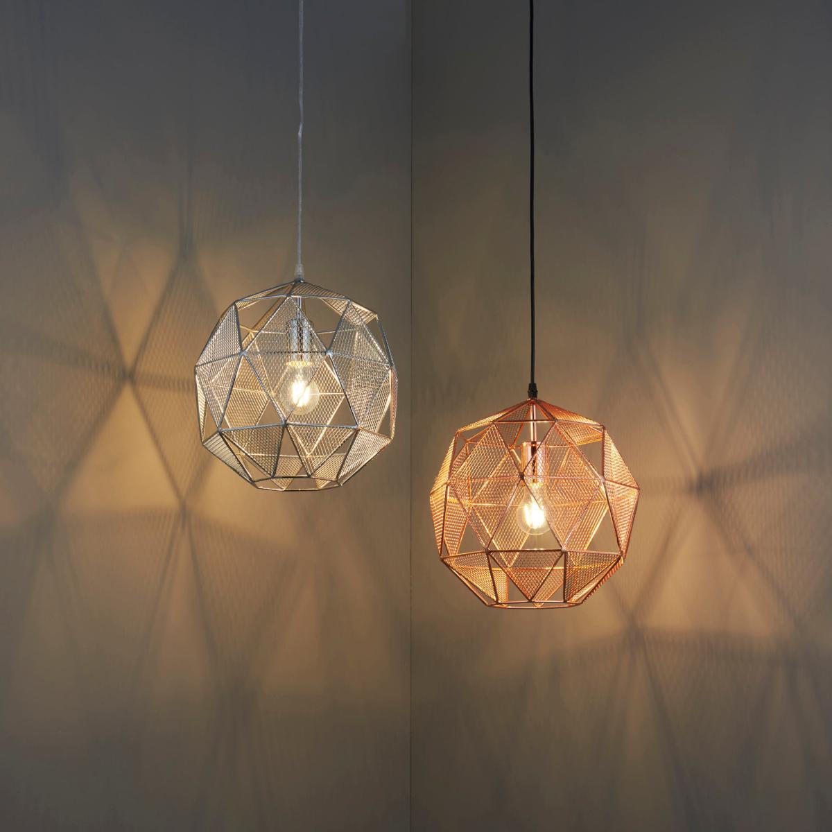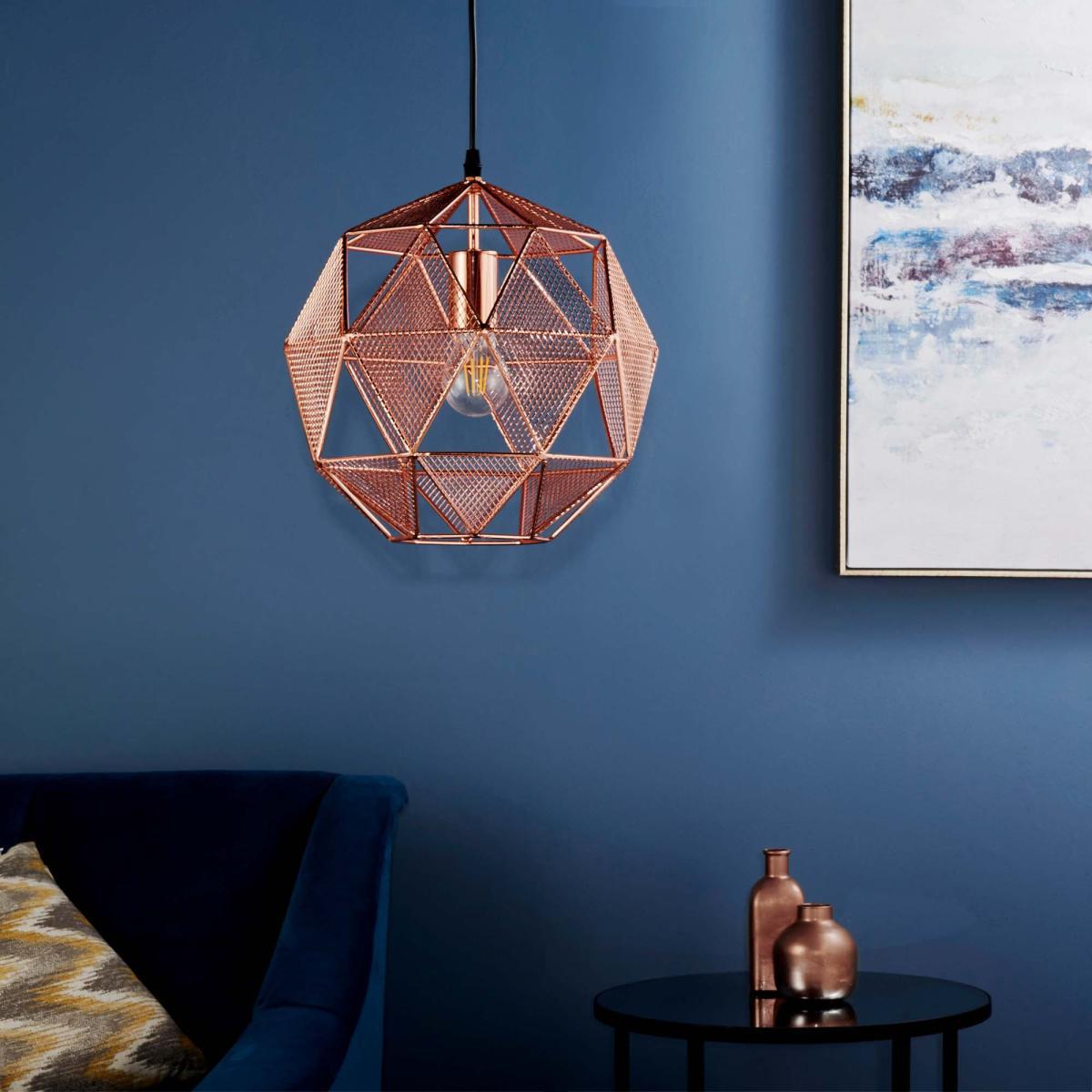 A stunningly crafted pendant light that features an on-trend copper plated geomatric design that suits any interior and home décor. This stunning dimmable light can be height adjusted to help you create the perfect ambiance for your home style and the most stylish way to add a contemporary yet classic element to your home, and the ulimitate comibination of style and functionalitly. Please note: Bulbs are not included. Click. Here. , to view our range of bulbs. This ceiling fitting comes with a 2 year guarantee. Click. Here. To view our terms and conditions.