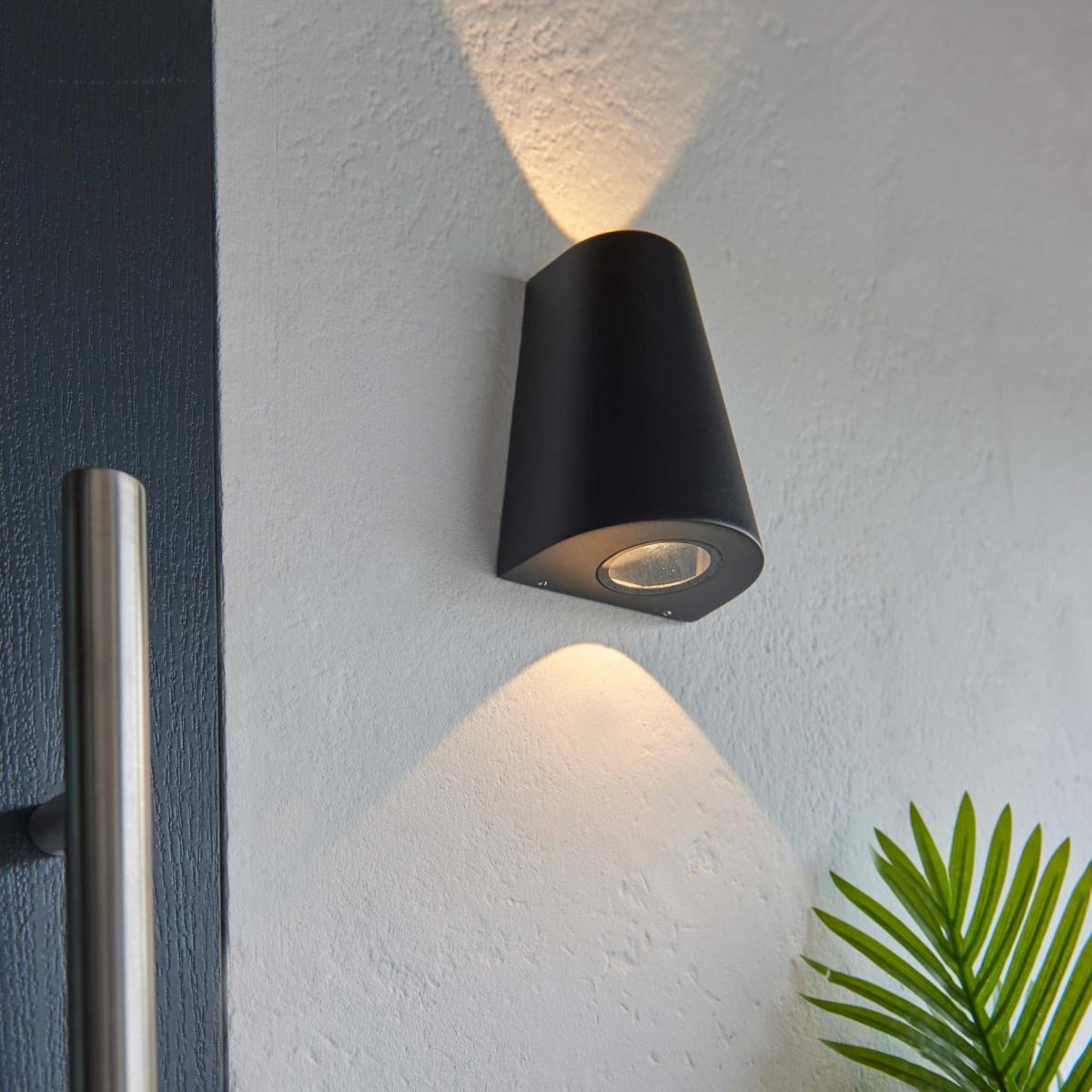Light up the exterior of your house with the ultra-modern and impressive design of the Bryce Outdoor 2 Wall Light. Perfect to display as effortless decoration with fantastic functionality outside your front door, this lighting features 2 lights, one above and one below for a glowing showcase effect. Constructed from corrosive resistant aluminium and a textured black finish on the metalwork, this lighting has a IP44 rating and is suitable for outdoor use. This piece can be combined with other items in the Bryce range for a synchronised look.