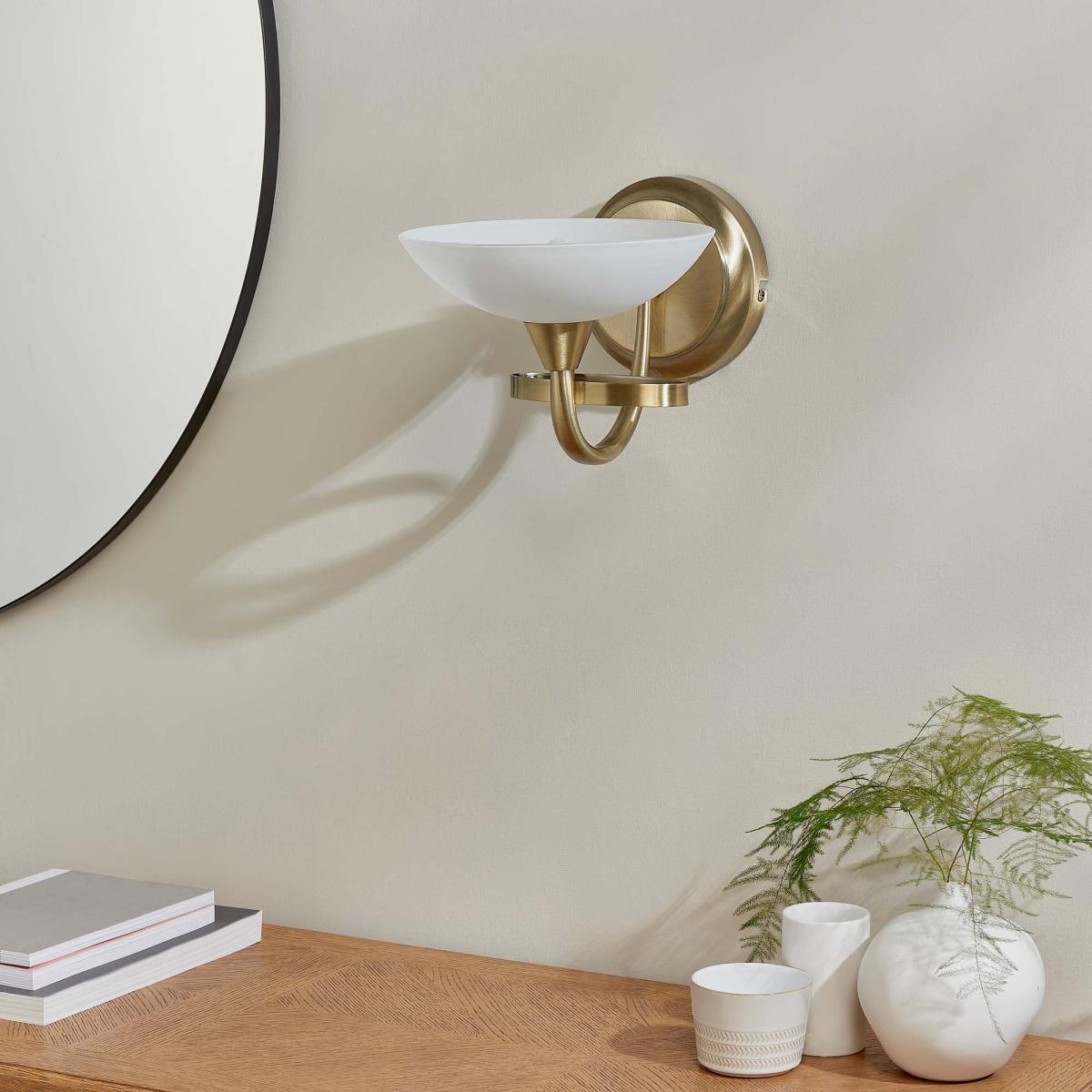 Boasting a classic modern design, this wall light is perfect for lighting up any room in your home. With an antique brass plated finish and a matt white glass shade, this light is stylish and modern and adds a wow point to your home. This light is dimmable and is perfect for use with a G9 LED lamp.