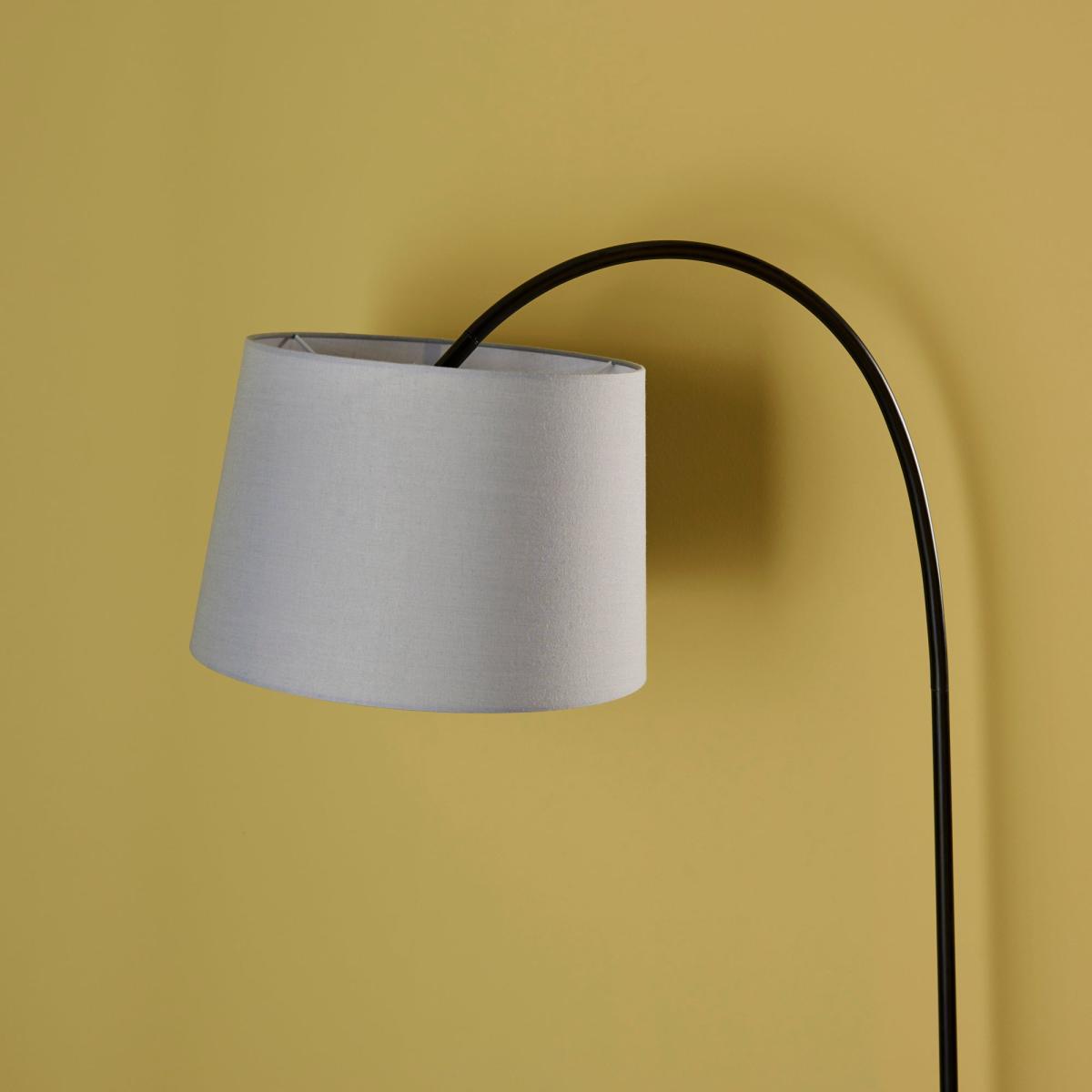 This relaxed modern style floor lamp boasts a mdoern matt black painted finish, supplied with a grey cotton mix shade for a traditional look. Featuring an easy accessible, yet discreet lamp holder on/off switch, this lamp is perfect for today's contemporary living.