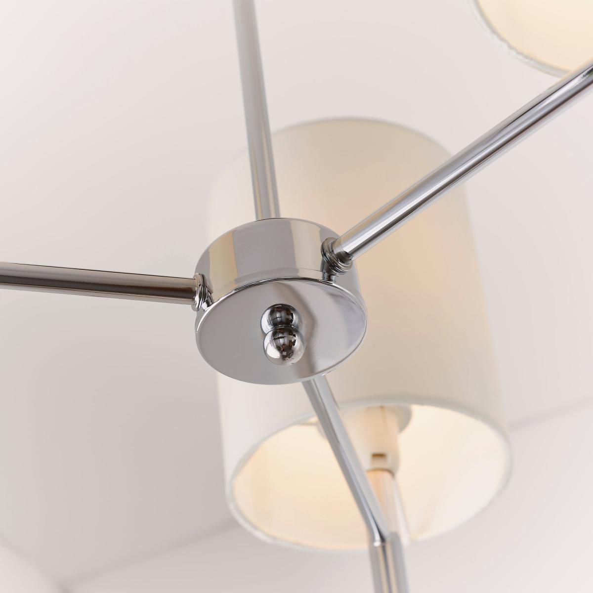 Adorned with 3 stunning off-white faux silk shades that perfectly complement the stylish chrome finish, the Dewey 3 light ceiling fitting would make a trendy addition to your home. This light fitting is suitable for use with dimmer switches and LED bulbs, with matching items and other colour options available.