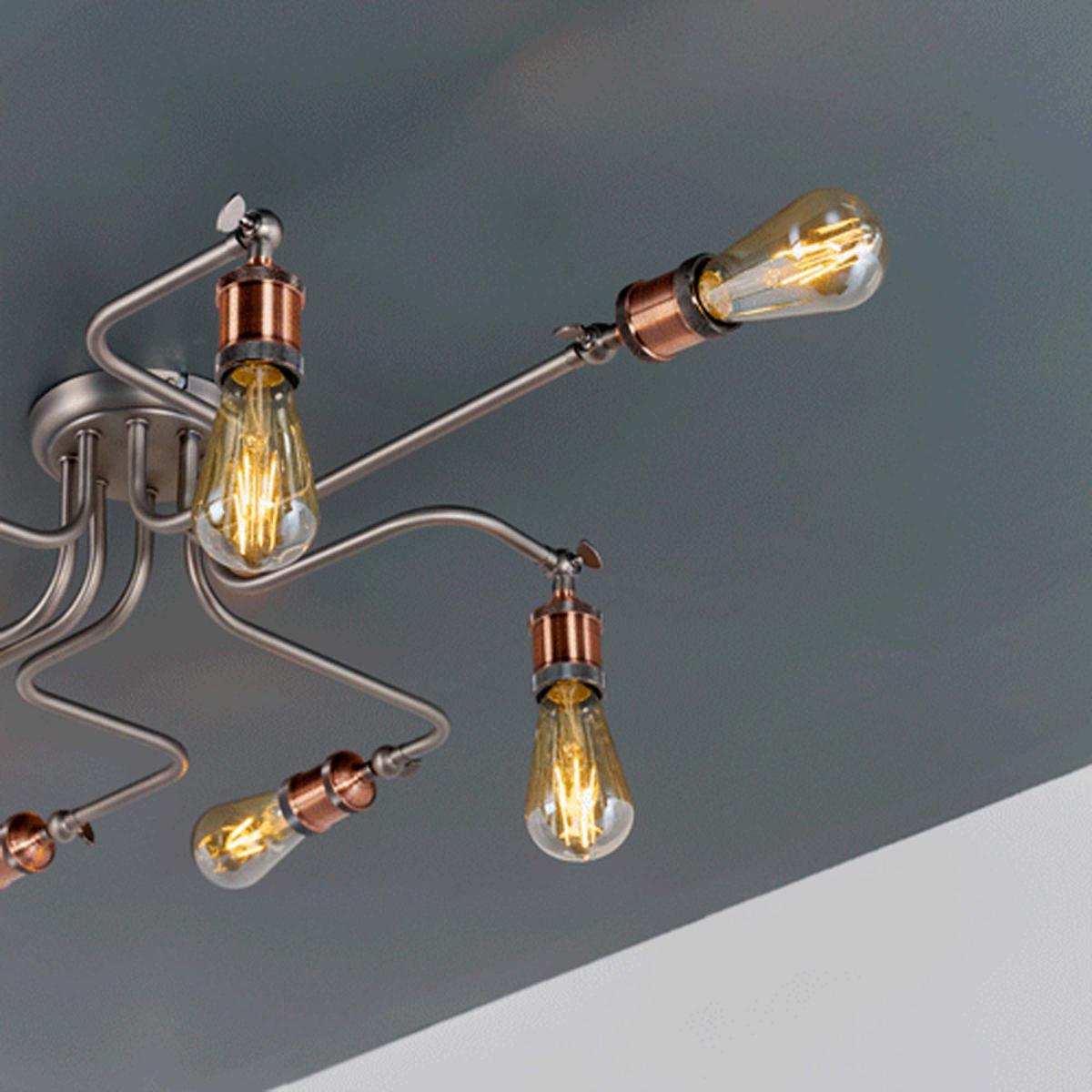 Featuring the Vogue Eastville 8 Light, an impressive industrial inspired ceiling light, finished in aged pewter and aged copper, making it bang up to date with on-trend ‘retro’ styling. This unique piece is close to the ceiling but impressive in size, featuring adjustable knuckles and knurled lamp holders to complete the authentic look. Pair with filament LED lamps, to create the perfect retro look to your space.