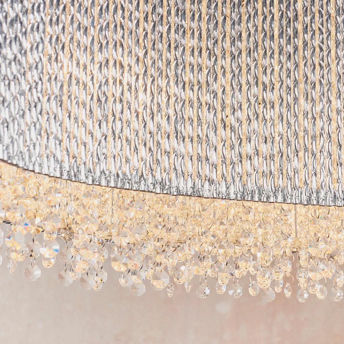 I’d call this the Galina crystal light - it’s one of my go-to fixtures when you want sparkle without bulk. The sleek chrome frame and hanging crystal strands suit modern-glam or contemporary transitional spaces, especially over a long dining table or kitchen island. For best effect, install it on a dimmer so you can shift from bright task lighting to a softer evening glow. Pair with pale walls, a statement rug and minimal accessories to let the crystals take centre stage, and use mirrored or high-gloss surfaces beneath to bounce the light further around the room.