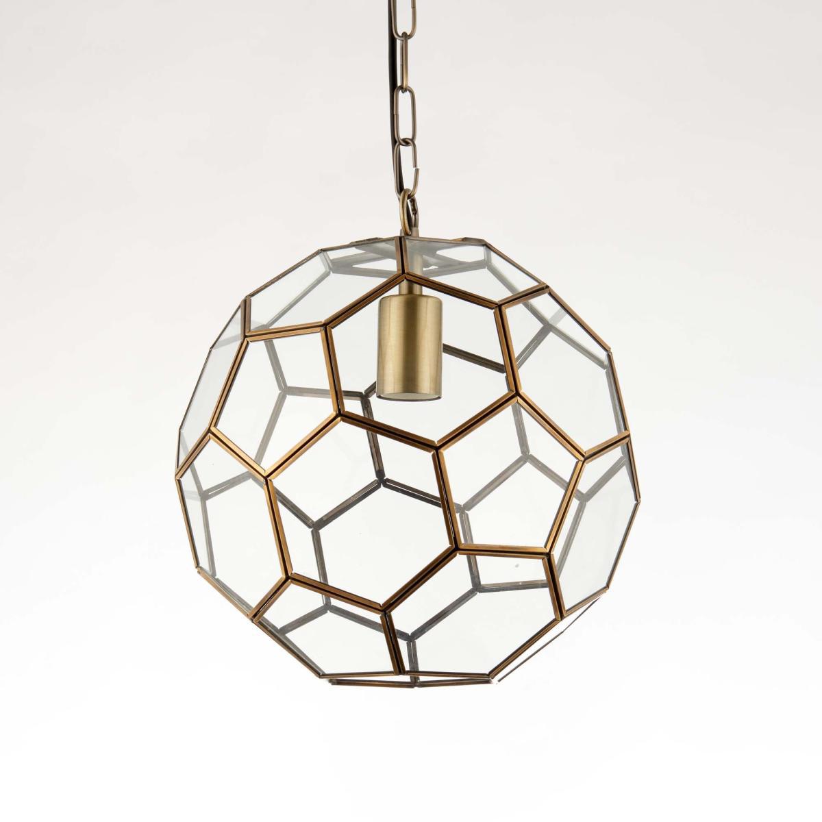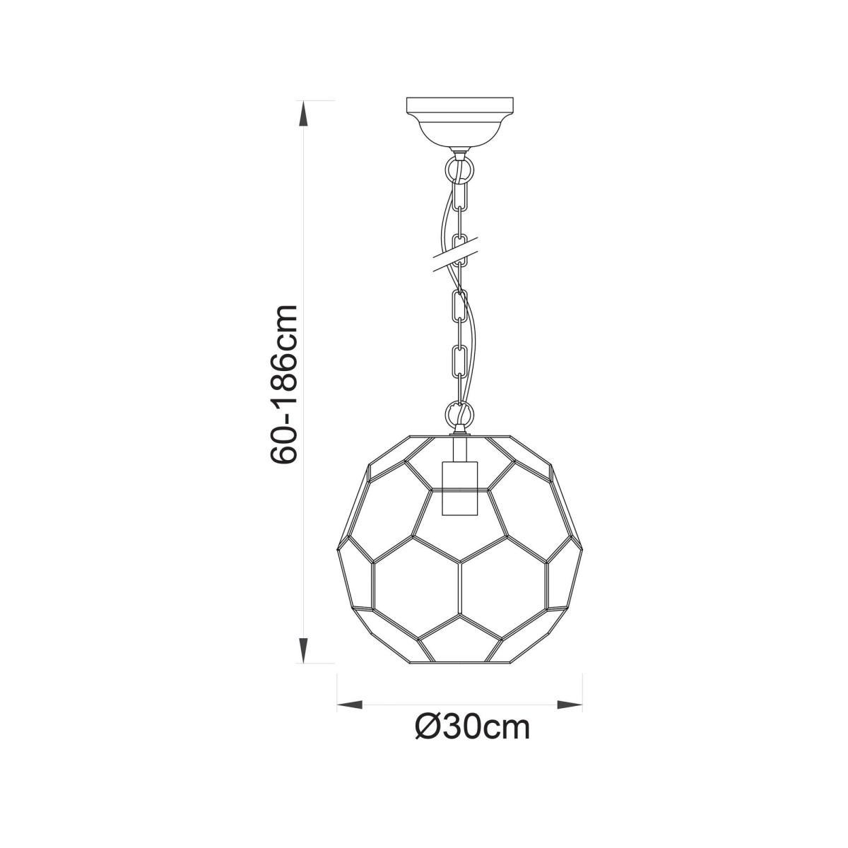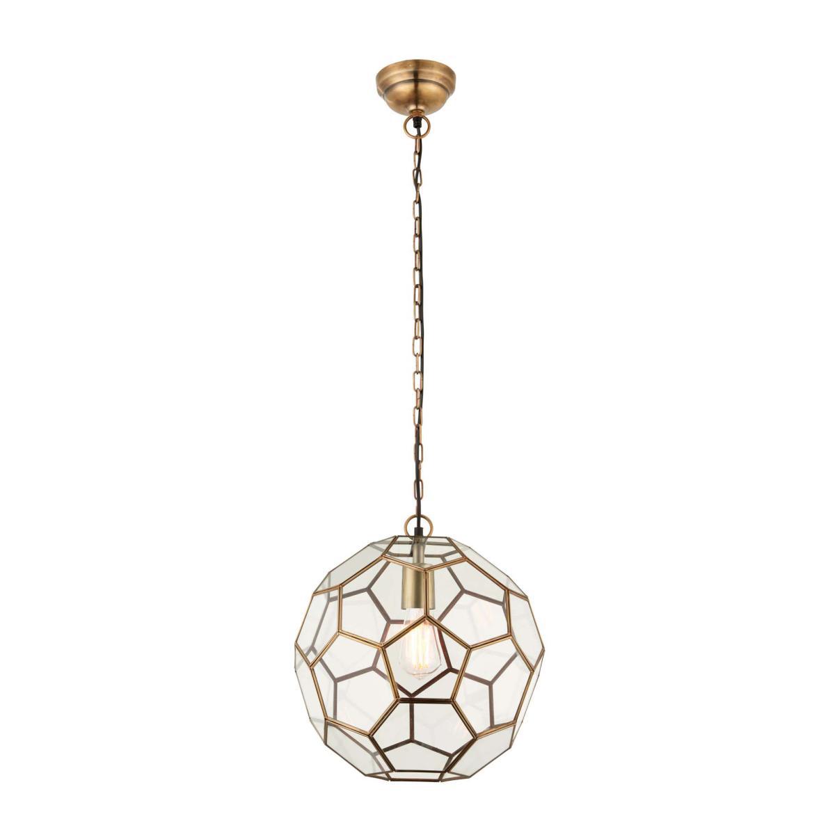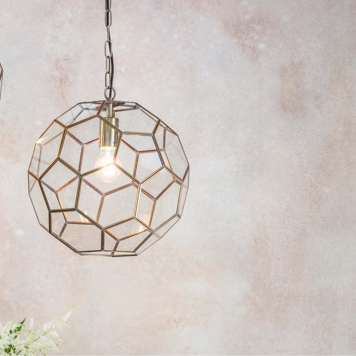 Make a bold statement in your home with this striking hexagonal design. The Vogue Hillier incorporates hexagonal glass panels edged in antique brass, complete with a height adjustable decorative chain. This light is dimmable and suitable for use with LED lamps. A unique design that will instantly transform your interior.